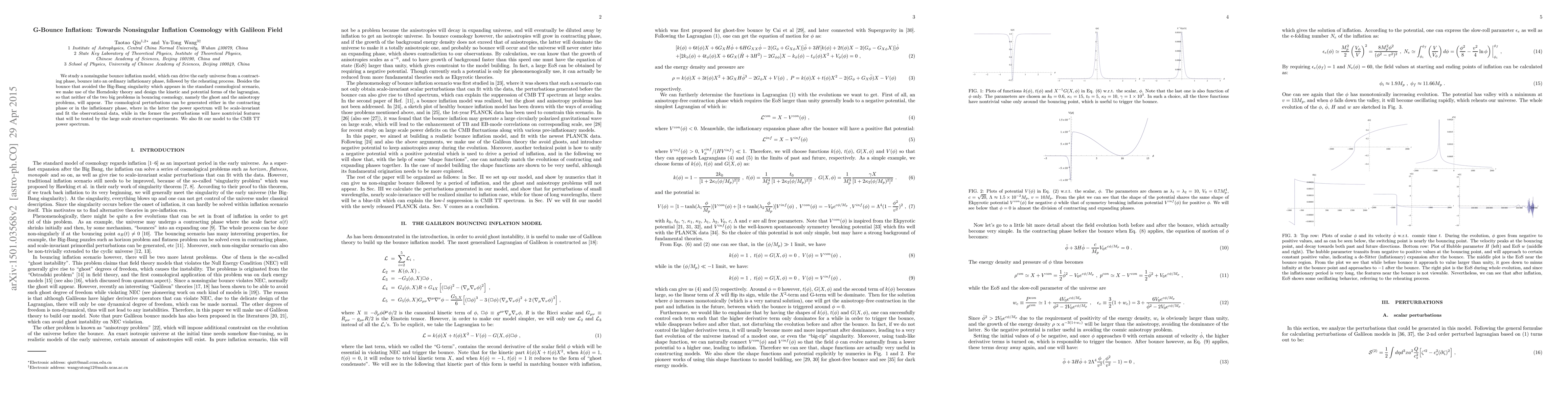 This paper proposes a nonsingular bounce inflation model driven by a Galileon field, avoiding the Big-Bang singularity and addressing the ghost and anisotropy issues in bouncing cosmology. The model generates cosmological perturbations that can fit observational data and be tested by large-scale structure experiments.