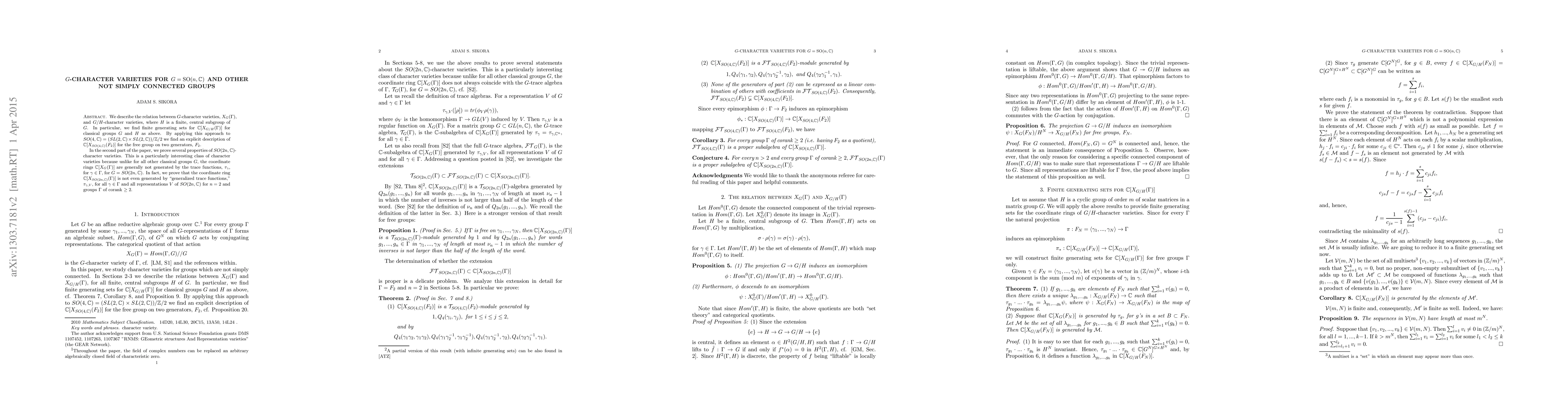 This paper explores the relationship between G-character varieties and $G/H$-character varieties, particularly for classical groups like SO(n,C). It provides explicit generating sets for coordinate rings of $G/H$-character varieties and describes $C[X_{SO(4,C)}(F_2)]$ for the free group on two generators. Additionally, it proves that for SO(2n,C), the coordinate rings are not generated by trace functions or generalized trace functions for certain groups and dimensions.