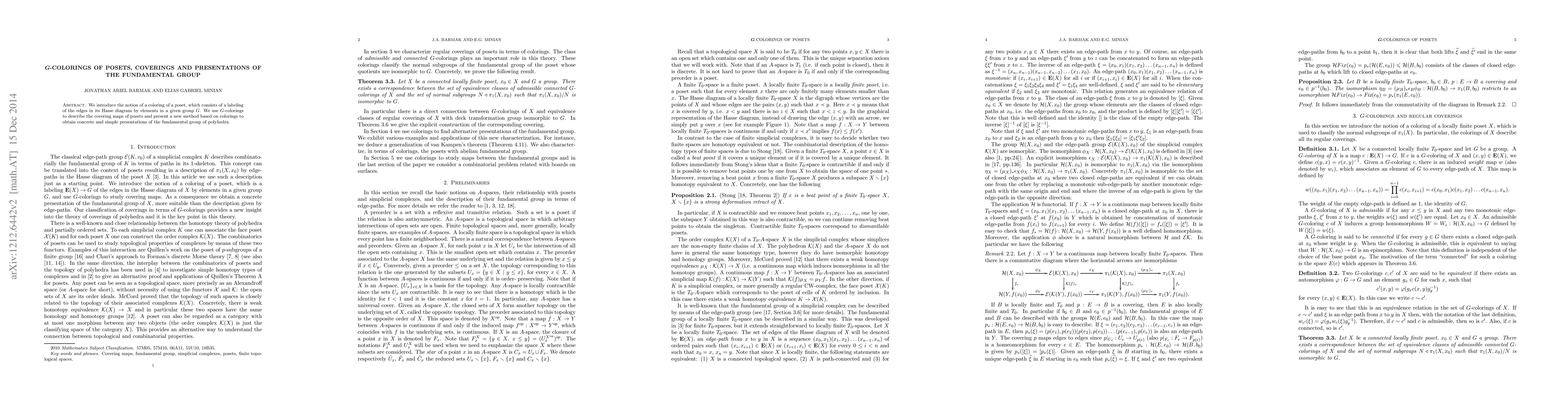 We introduce the notion of a coloring of a poset, which consists of a labeling of the edges in its Hasse diagram by elements in a given group $G$. We use $G$-colorings to describe the covering maps of posets and present a new method based on colorings to obtain concrete and simple presentations of the fundamental group of polyhedra.