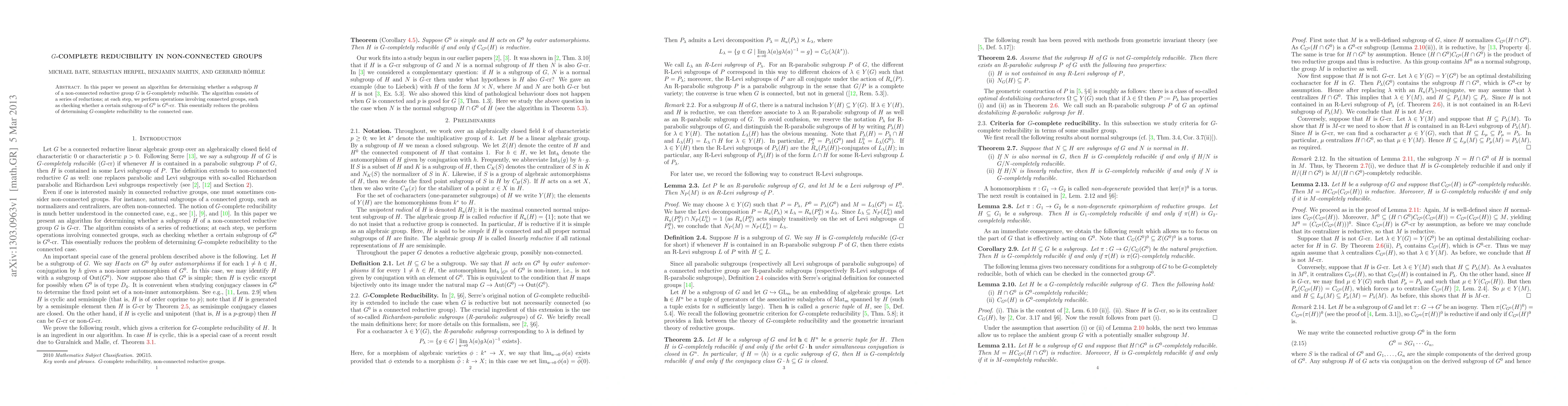 In this paper we present an algorithm for determining whether a subgroup H of a non-connected reductive group G is G-completely reducible. The algorithm consists of a series of reductions; at each step, we perform operations involving connected groups, such as checking whether a certain subgroup of G^0 is G^0 -cr. This essentially reduces the problem of determining G-complete reducibility to the connected case.