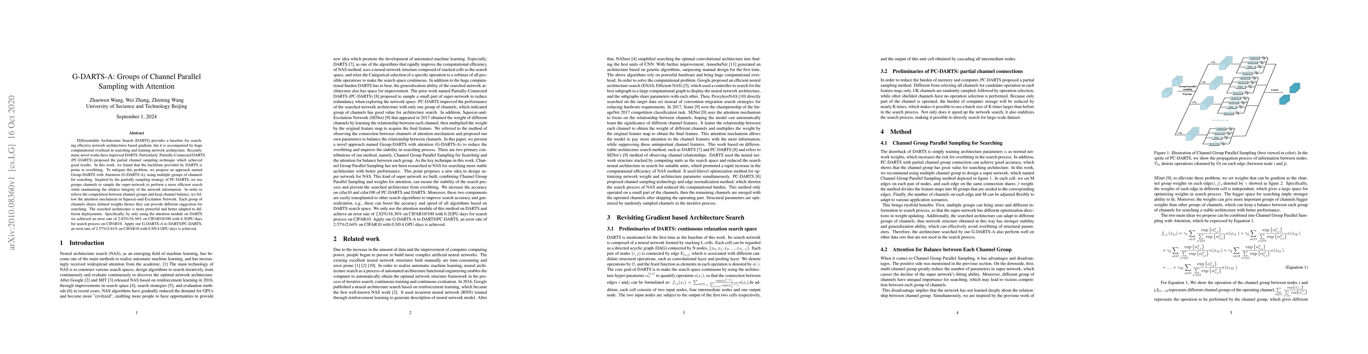 G-DARTS-A introduces a method for efficient network architecture search using multiple channel groups and attention mechanisms, achieving better generalization and performance compared to DARTS and PC-DARTS, with notable error rates on CIFAR10/100 datasets.