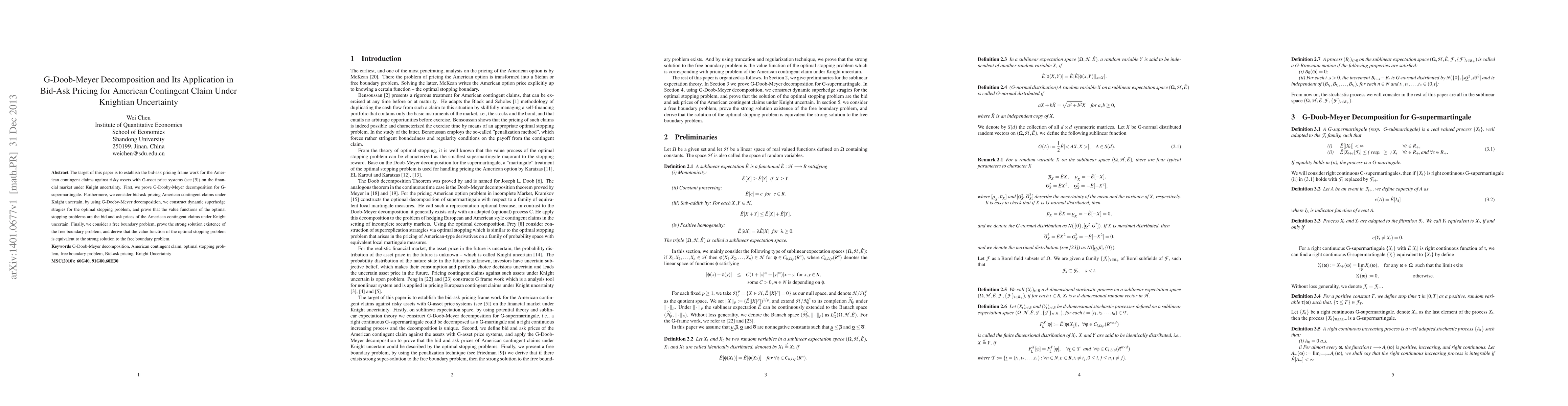 The target of this paper is to establish the bid-ask pricing frame work for the American contingent claims against risky assets with G-asset price systems (see \cite{Chen2013b}) on the financial market under Knight uncertainty. First, we prove G-Dooby-Meyer decomposition for G-supermartingale. Furthermore, we consider bid-ask pricing American contingent claims under Knight uncertain, by using G-Dooby-Meyer decomposition, we construct dynamic superhedge stragies for the optimal stopping problem, and prove that the value functions of the optimal stopping problems are the bid and ask prices of the American contingent claims under Knight uncertain. Finally, we consider a free boundary problem, prove the strong solution existence of the free boundary problem, and derive that the value function of the optimal stopping problem is equivalent to the strong solution to the free boundary problem.