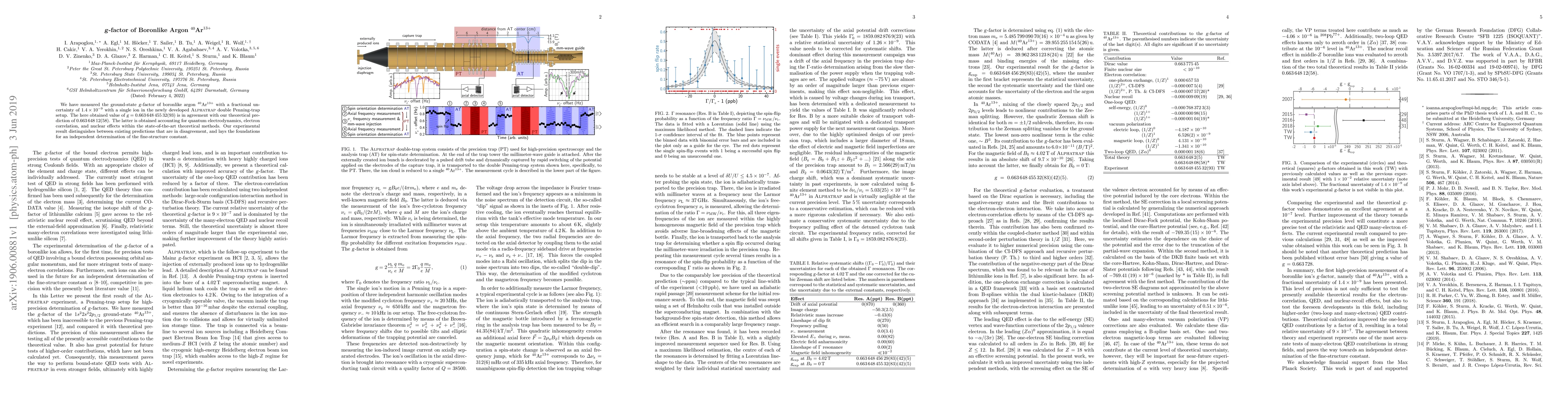 We have measured the ground-state $g$-factor of boronlike argon $^{40}\textrm{Ar}^{13+}$ with a fractional uncertainty of \SI{1.4e-9}{} with a single ion in the newly developed ALPHATRAP double Penning-trap setup. The here obtained value of $g=0.663\,648\,455\,32(93)$ is in agreement with our theoretical prediction of $0.663\,648\,12(58)$. The latter is obtained accounting for quantum electrodynamics, electron correlation, and nuclear effects within the state-of-the-art theoretical methods. Our experimental result distinguishes between existing predictions that are in disagreement, and lays the foundations for an independent determination of the fine-structure constant.