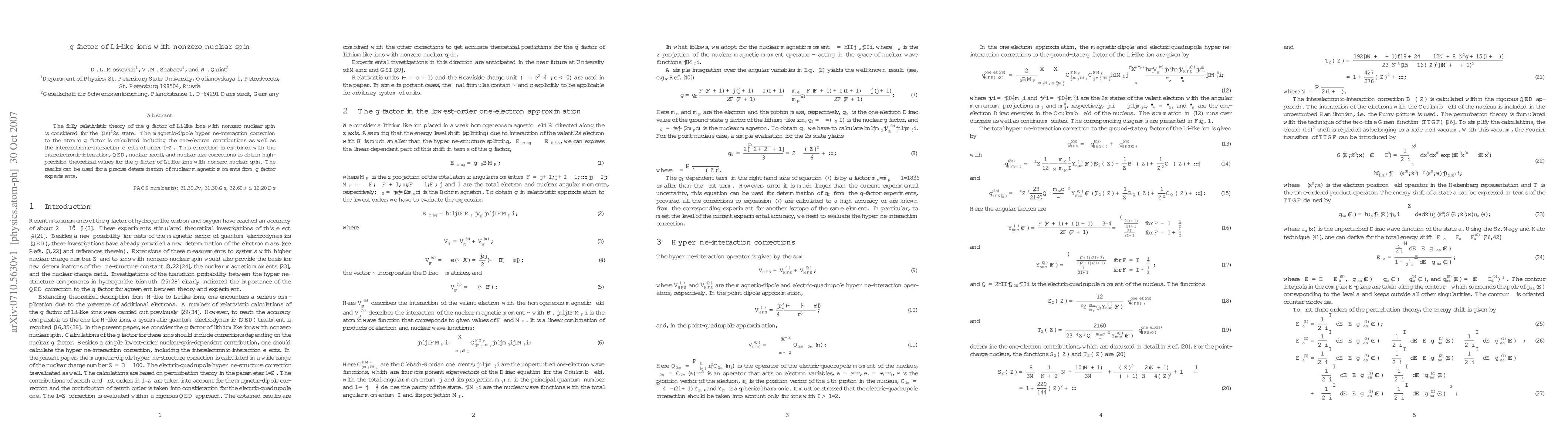 This paper presents high-precision theoretical values for the g factor of Li-like ions with nonzero nuclear spin in the (1s)^2 2s state, incorporating relativistic, QED, and hyperfine-interaction corrections. These results enable accurate determination of nuclear magnetic moments through g factor experiments.