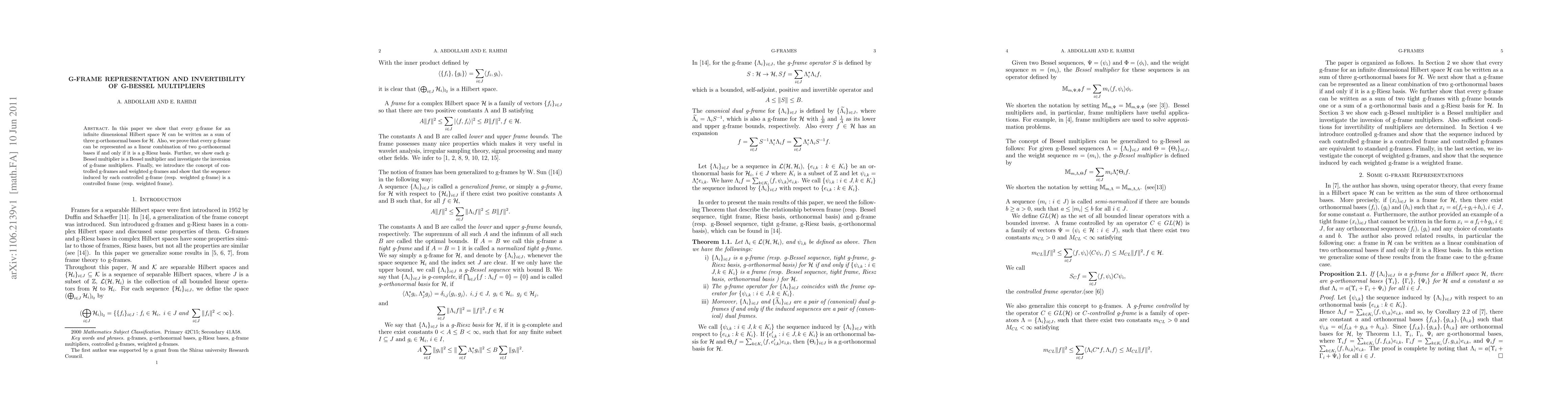 This paper demonstrates that any g-frame in an infinite-dimensional Hilbert space can be expressed as a sum of three g-orthonormal bases and can be represented by a linear combination of two g-orthonormal bases if it is a g-Riesz basis. It also explores the inversion of g-frame multipliers and introduces controlled g-frames and weighted g-frames, proving the sequence induced by these frames retains the respective frame properties.