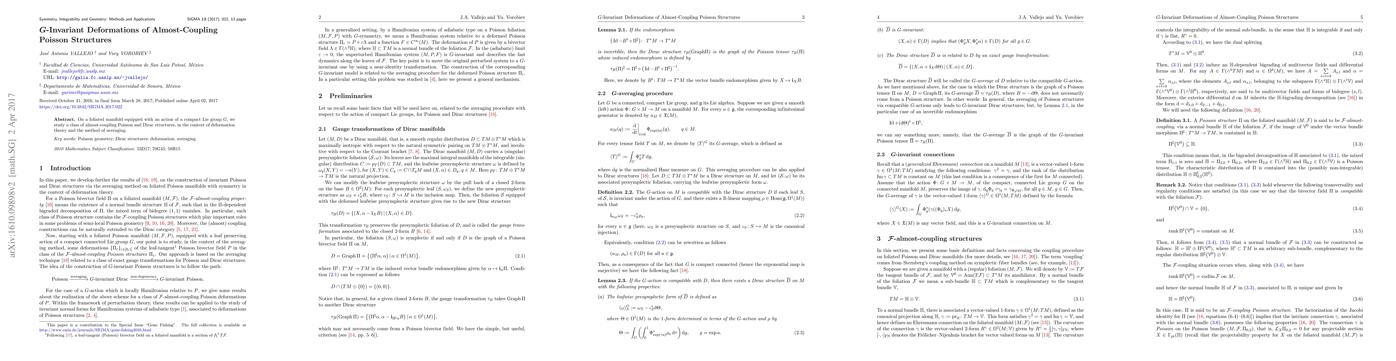 On a foliated manifold equipped with an action of a compact Lie group $G$, we study a class of almost-coupling Poisson and Dirac structures, in the context of deformation theory and the method of averaging.