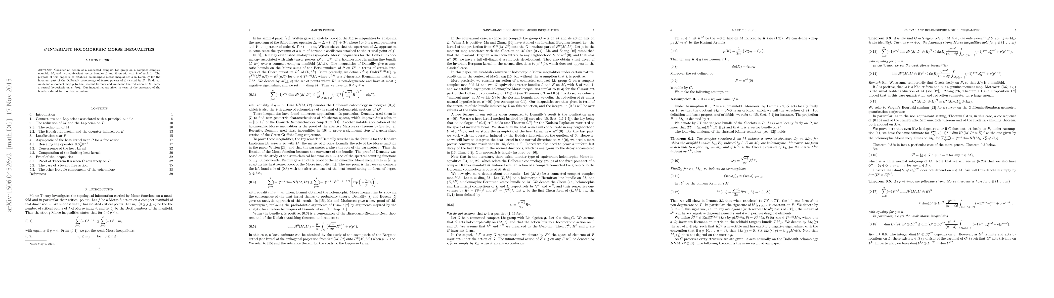 This paper establishes holomorphic Morse inequalities for the invariant Dolbeault cohomology of tensor powers of a line bundle on a compact complex manifold with a group action, using a moment map and reduction defined via the Kostant formula, relating the inequalities to the curvature of the induced bundle.