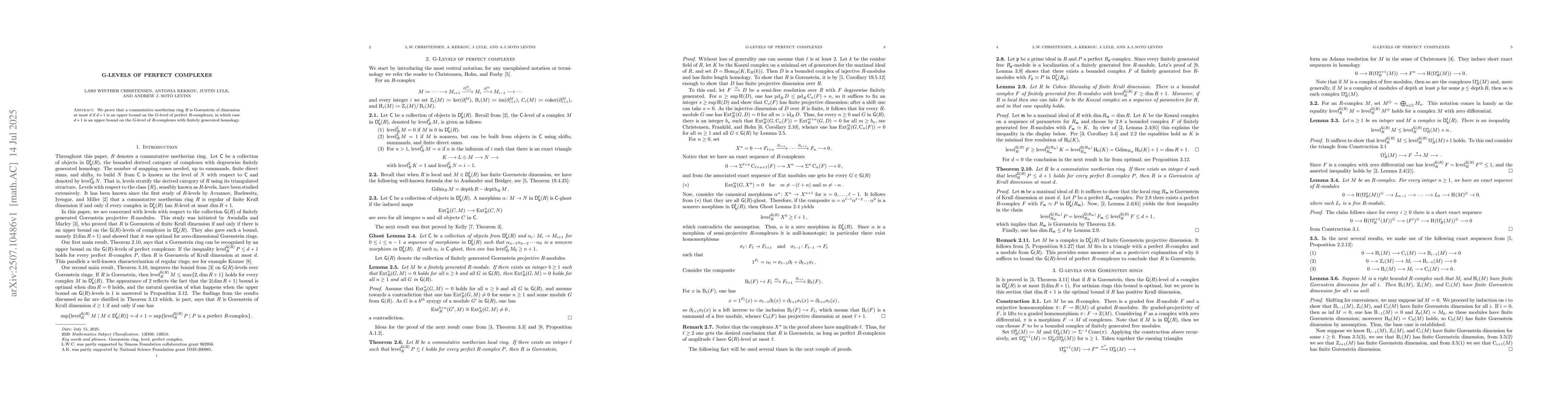 We prove that a commutative noetherian ring R is Gorenstein of Krull dimension at most d if d+1 is an upper bound on the G-level of perfect R-complexes, in which case d+1 is an upper bound on the G-level of all R-complexes with finitely generated homology.