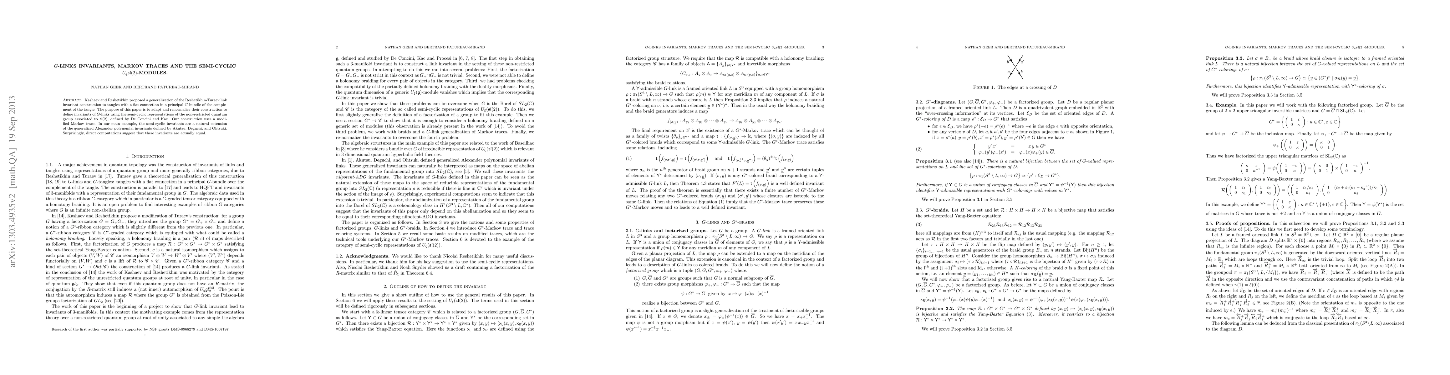 Kashaev and Reshetikhin proposed a generalization of the Reshetikhin-Turaev link invariant construction to tangles with a flat connection in a principal G-bundle over the complement of the tangle. The purpose of this paper is to adapt and renormalize their construction to define invariants of G-links using the semi-cyclic representations of the non-restricted quantum group associated to sl2, defined by De Concini and Kac. Our construction uses a modified Markov trace. In our main example, the semi-cyclic invariants are a natural extension of the generalized Alexander polynomial invariants defined by Akutsu, Deguchi, and Ohtsuki. Surprisingly, direct computations suggest that these invariants are actually equal.