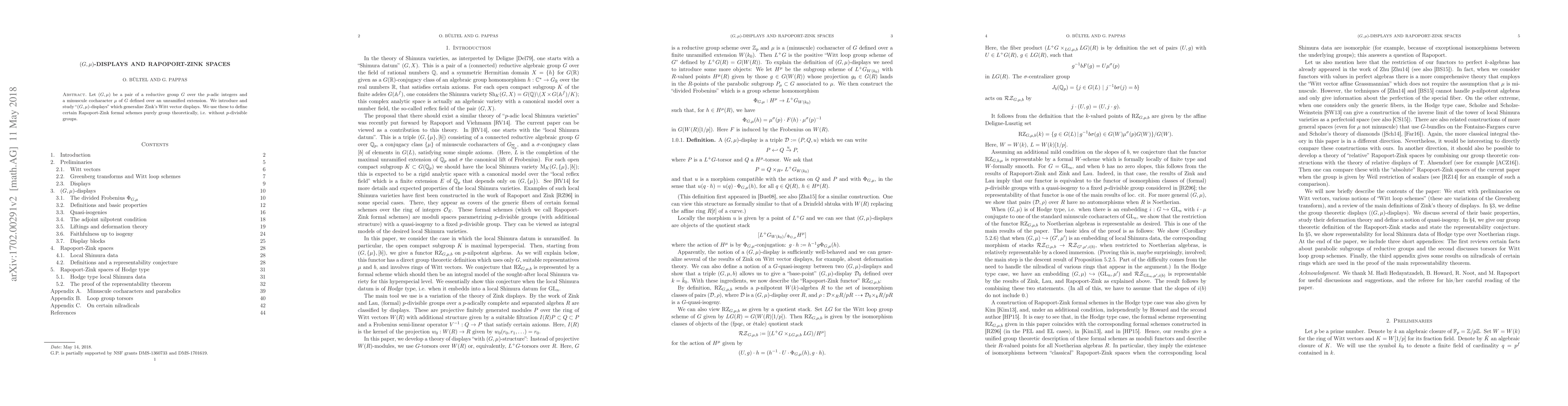 This paper introduces and explores "(G, \mu)-displays," a generalization of Zink's Witt vector displays, for a reductive group G over the p-adic integers and a minuscule cocharacter \mu. It defines Rapoport-Zink formal schemes purely through group theory, avoiding the use of p-divisible groups.