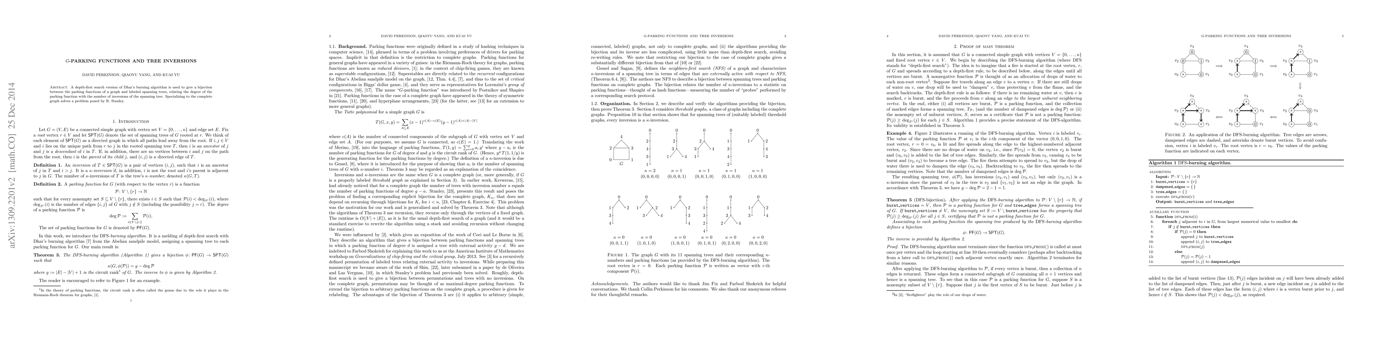 This paper establishes a bijection between parking functions of a graph and labeled spanning trees using a depth-first search version of Dhar's burning algorithm, linking the degree of the parking function to the number of inversions in the spanning tree. Specializing to the complete graph, it resolves a question posed by R. Stanley.