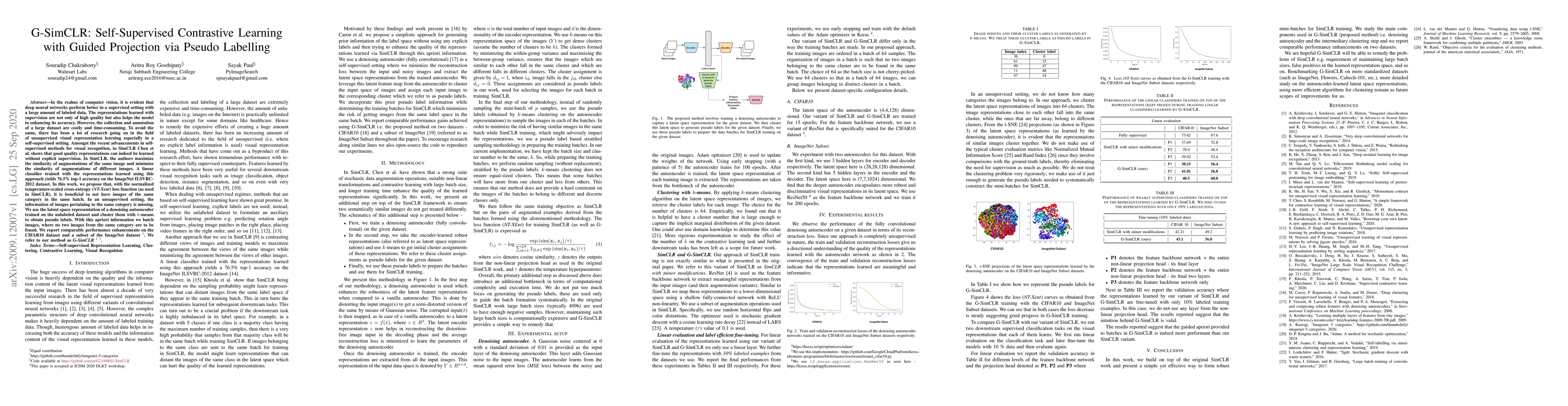 Researchers propose G-SimCLR, a self-supervised contrastive learning method that uses pseudo labels to improve visual representation learning without explicit supervision, achieving comparable performance enhancements on CIFAR10 and a subset of ImageNet.