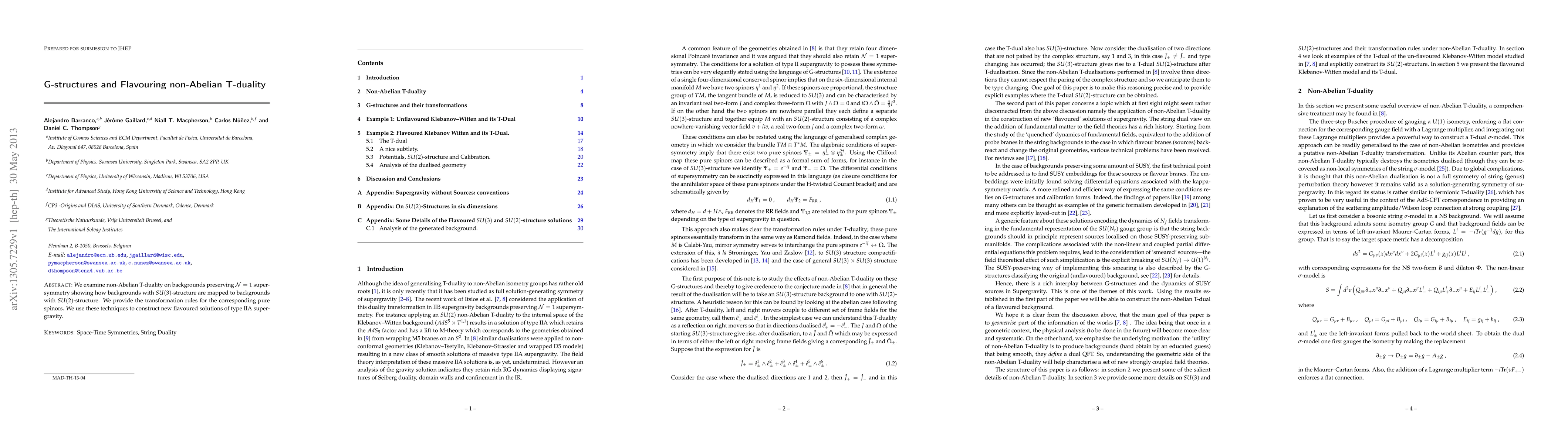 The paper presents detailed transformation rules for pure spinors under non-Abelian T-duality and constructs new flavored solutions of type IIA supergravity.