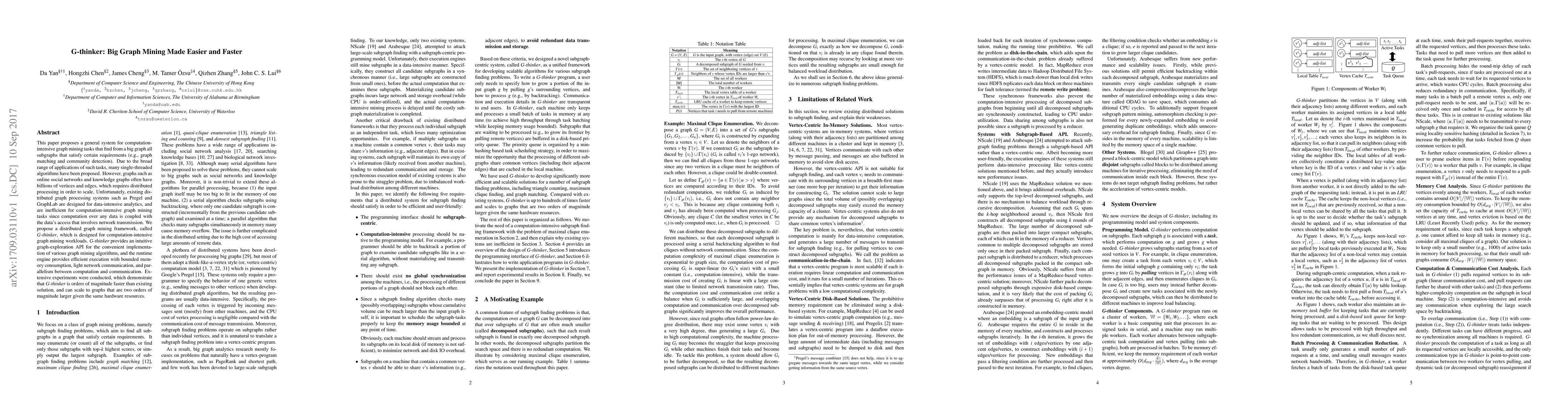 G-thinker introduces an intuitive graph-exploration API and a runtime engine that efficiently executes graph mining algorithms with bounded memory consumption, minimal network communication, and parallel computation-communication.