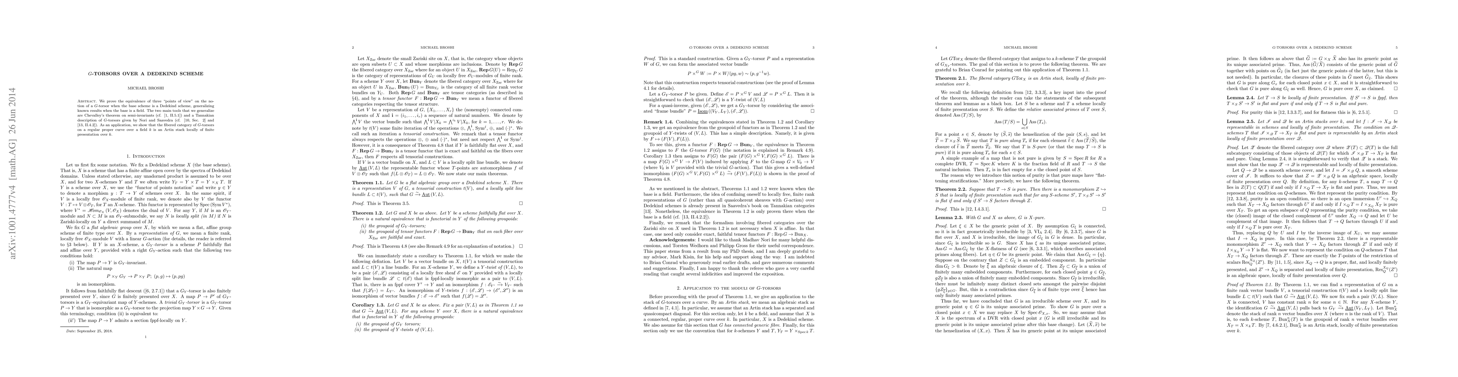 This paper establishes the equivalence of different interpretations of G-torsors over a Dedekind scheme and demonstrates that the fibered category of G-torsors on a regular proper curve over a field forms an Artin stack locally of finite presentation over that field.