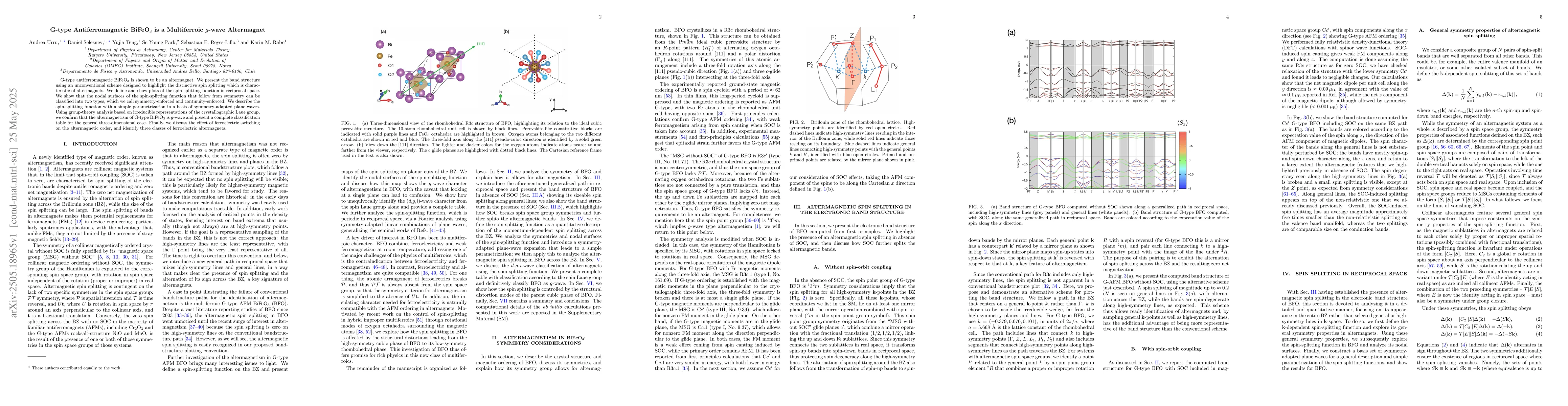 Researchers show that G-type antiferromagnetic BiFeO3 exhibits altermagnetism with a $g$-wave, offering insights into its ferroelectric switching effects and classification of multiferroic materials.