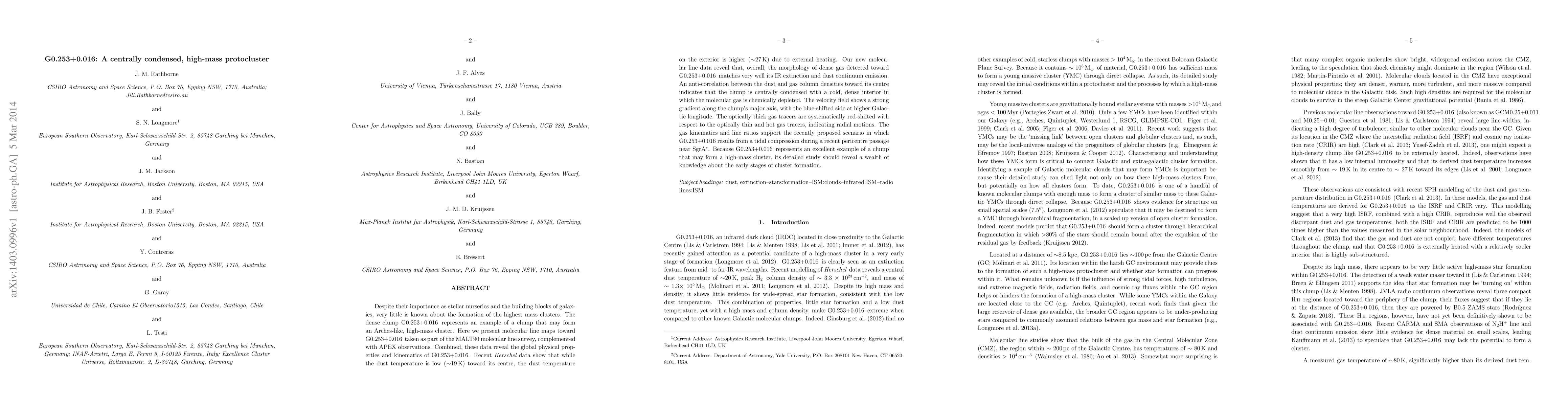 G0.253+0.016 is a dense, centrally condensed clump potentially forming a high-mass cluster, characterized by low central dust temperature and significant radial gas motions, likely due to tidal compression near SgrA*. Its study may offer insights into early high-mass cluster formation.