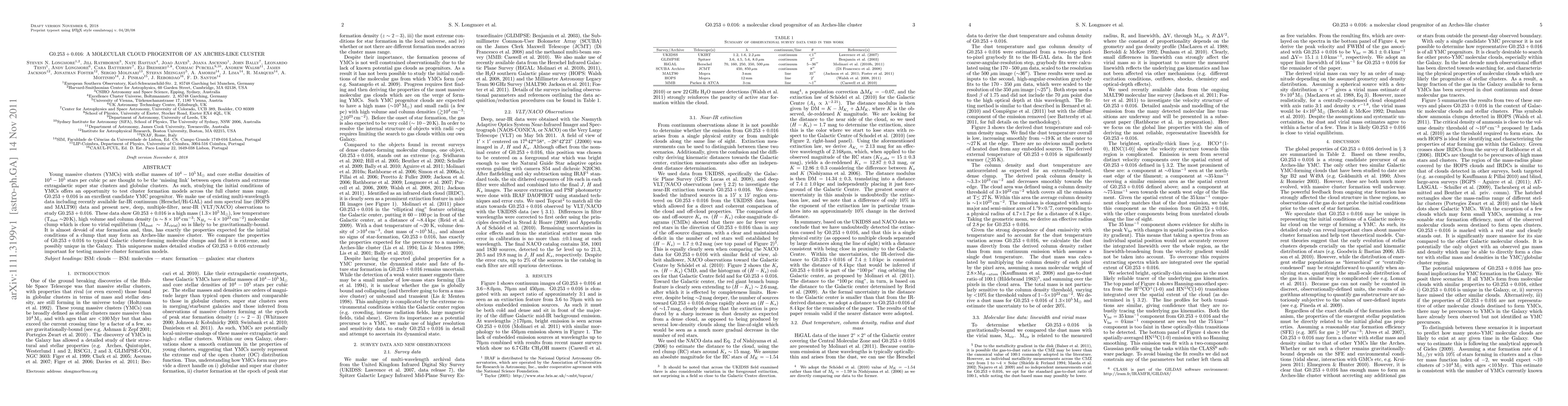 Young massive clusters (YMCs) with stellar masses of 10^4 - 10^5 Msun and core stellar densities of 10^4 - 10^5 stars per cubic pc are thought to be the `missing link' between open clusters and extreme extragalactic super star clusters and globular clusters. As such, studying the initial conditions of YMCs offers an opportunity to test cluster formation models across the full cluster mass range. G0.253+0.016 is an excellent candidate YMC progenitor. We make use of existing multi-wavelength data including recently available far-IR continuum (Herschel/Hi-GAL) and mm spectral line (HOPS and MALT90) data and present new, deep, multiple-filter, near-IR (VLT/NACO) observations to study G0.253+0.016. These data show G0.253+0.016 is a high mass (1.3x10^5 Msun), low temperature (T_dust~20K), high volume and column density (n ~ 8x10^4 cm^-3; N_{H_2} ~ 4x10^23 cm^-2) molecular clump which is close to virial equilibrium (M_dust ~ M_virial) so is likely to be gravitationally-bound. It is almost devoid of star formation and, thus, has exactly the properties expected for the initial conditions of a clump that may form an Arches-like massive cluster. We compare the properties of G0.253+0.016 to typical Galactic cluster-forming molecular clumps and find it is extreme, and possibly unique in the Galaxy. This uniqueness makes detailed studies of G0.253+0.016 extremely important for testing massive cluster formation models.