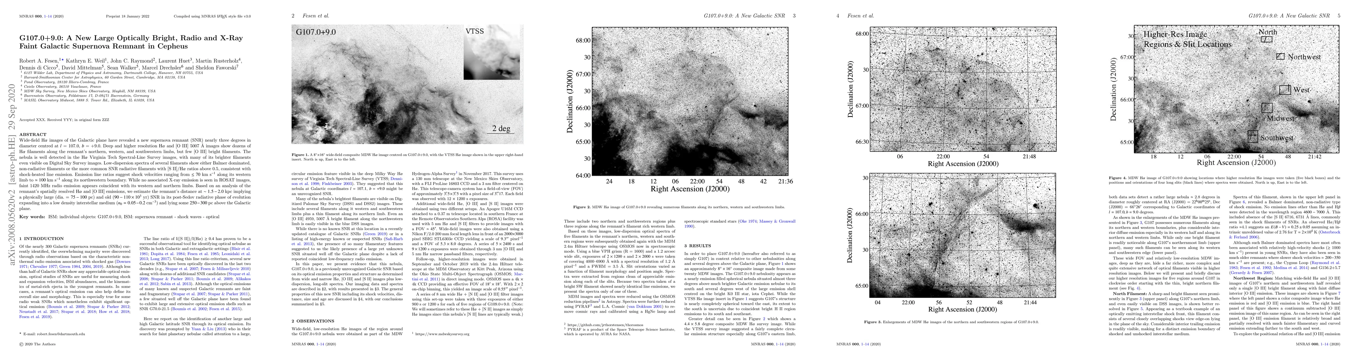 Wide-field H-alpha images of the Galactic plane have revealed a new supernova remnant (SNR) nearly three degrees in diameter centred at l = 107.0, b = +9.0. Deep and higher resolution H-alpha and [O III] 5007 Ang images show dozens of H-alpha filaments along the remnant's northern, western, and southwestern limbs, but few [O III] bright filaments. The nebula is well detected in the H-alpha Virginia Tech Spectral-Line Survey images, with many of its brighter filaments even visible on Digital Sky Survey images. Low-dispersion spectra of several filaments show either Balmer dominated, non-radiative filaments or the more common SNR radiative filaments with [S II]/H-alpha ratios above 0.5, consistent with shock-heated line emission. Emission line ratios suggest shock velocities ranging from <70 km/s along its western limb to ~100 km/s along its northwestern boundary. While no associated X-ray emission is seen in ROSAT images, faint 1420 MHz radio emission appears coincident with its western and northern limbs. Based on an analysis of the remnant's spatially resolved H-alpha and [O III] emissions, we estimate the remnant's distance around 1.5 - 2.0 kpc implying a physically large (dia.= 75 - 100 pc) and old (90 - 110 x 10^3 yr) SNR in its post-Sedov radiative phase of evolution expanding into a low density interstellar medium (n = 0.05 - 0.2 cm^-3) and lying some 250 - 300 pc above the Galactic plane.