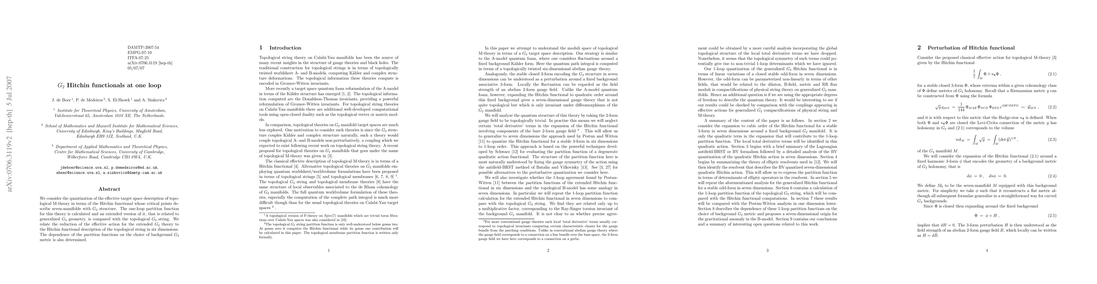 This paper quantizes the effective target space of topological M-theory via the Hitchin functional, calculating its one-loop partition function and comparing it to the topological G2 string. It also explores the relationship between the extended G2 theory and the Hitchin functional in six-dimensional topological string theory, while determining the partition function's dependence on the background G2 metric.