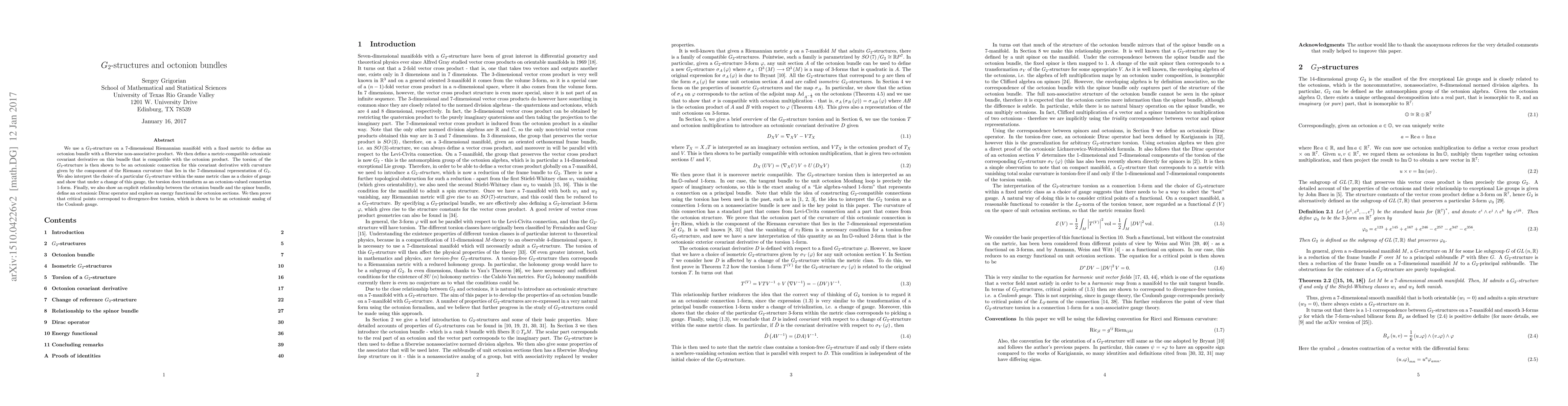 We use a G2-structure on a 7-dimensional Riemannian manifold with a fixed metric to define an octonion bundle with a fiberwise non-associative product. We then define a metric-compatible octonion covariant derivative on this bundle that is compatible with the octonion product. The torsion of the G2-structure is then shown to be an octonionic connection for this covariant derivative with curvature given by the component of the Riemann curvature that lies in the 7-dimensional representation of G2. We also interpret the choice of a particular G2-structure within the same metric class as a choice of gauge and show that under a change of this gauge, the torsion does transform as an octonion-valued connection 1-form. Finally, we also show an explicit relationship between the octonion bundle and the spinor bundle, define an octonionic Dirac operator and explore an energy functional for octonion sections. We then prove that critical points correspond to divergence-free torsion, which is shown to be an octonionic analog of the Coulomb gauge.