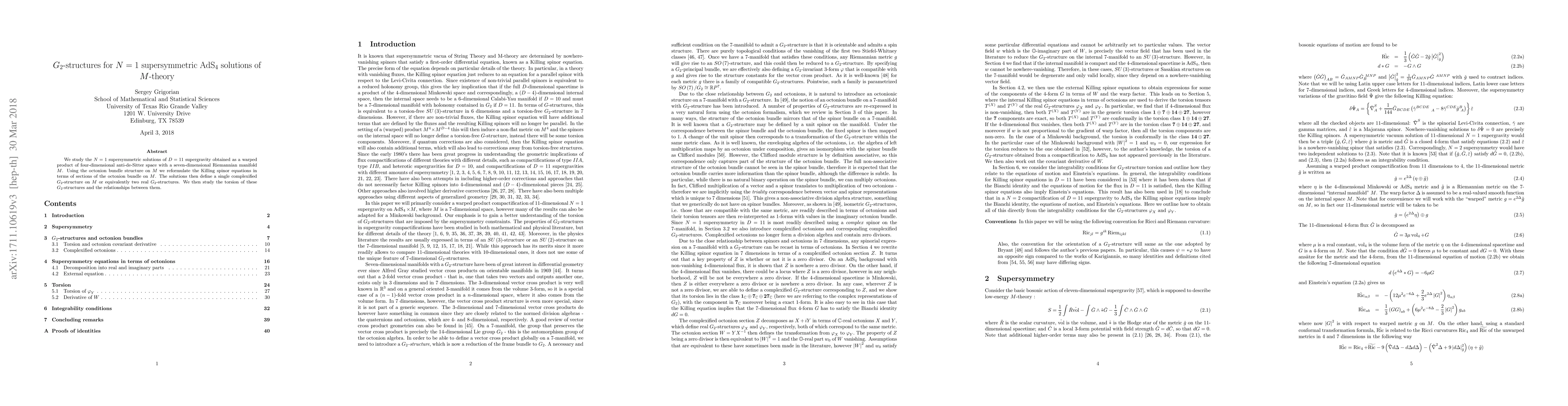 We study the N=1 supersymmetric solutions of D=11 supergravity obtained as a warped product of four-dimensional anti-de-Sitter space with a seven-dimensional Riemannian manifold M. Using the octonion bundle structure on M we reformulate the Killing spinor equations in terms of sections of the octonion bundle on M. The solutions then define a single complexified G2-structure on M or equivalently two real G2-structures. We then study the torsion of these G2-structures and the relationships between them.