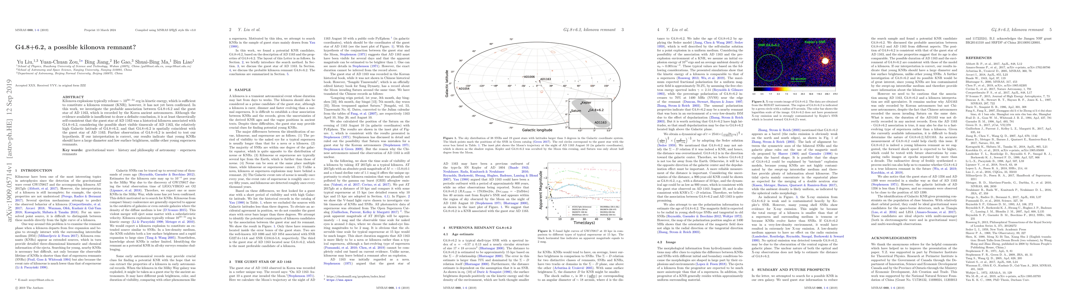 This paper explores the potential link between the radio remnant G4.8+6.2 and the historical kilonova from AD 1163, suggesting it could be a kilonova remnant. Further observations are required to confirm this hypothesis, which would imply young kilonova remnants have large diameters and low surface brightness.