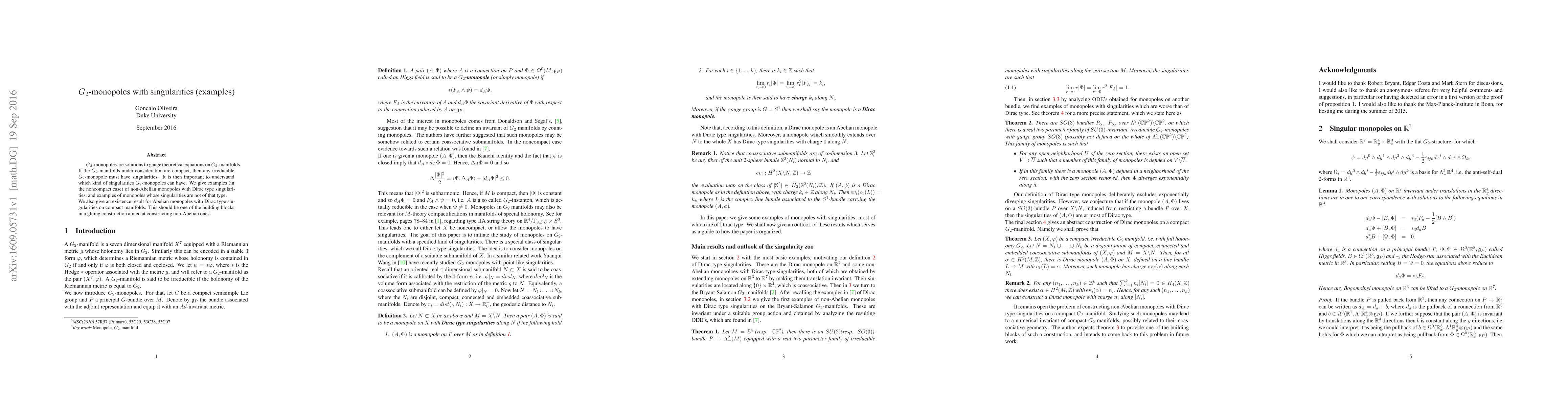 This paper explores $G_2$-monopoles on $G_2$-manifolds, focusing on their possible singularities when the manifolds are compact. It provides examples of non-Abelian monopoles with Dirac type singularities and others with different types, along with an existence result for Abelian monopoles with Dirac type singularities on compact manifolds.
