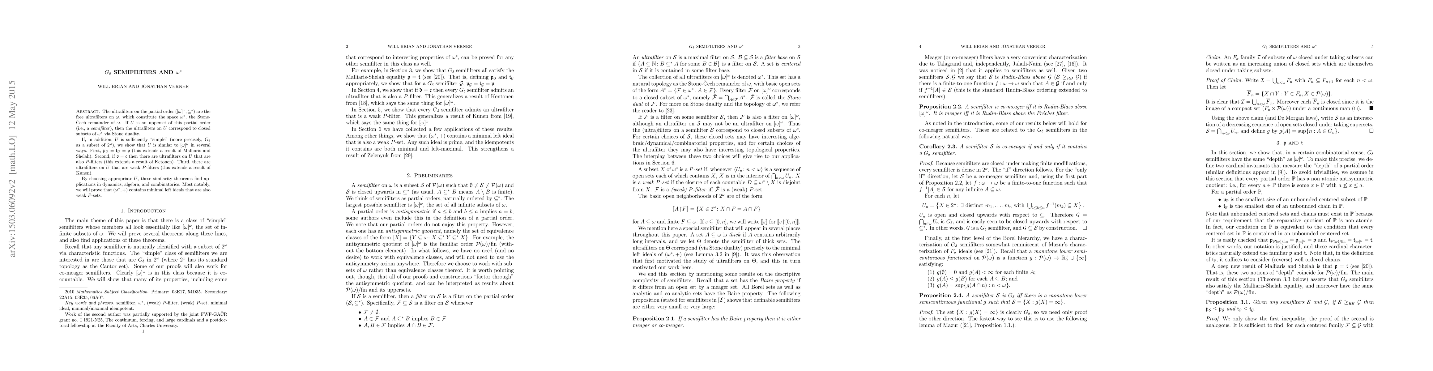 The ultrafilters on the partial order $([\omega]^{\omega},\subseteq^*)$ are the free ultrafilters on $\omega$, which constitute the space $\omega^*$, the Stone-Cech remainder of $\omega$. If $U$ is an upperset of this partial order (i.e., a semifilter), then the ultrafilters on $U$ correspond to closed subsets of $\omega^*$ via Stone duality. If, in addition, $U$ is sufficiently "simple" (more precisely, $G_\delta$ as a subset of $2^\omega$), we show that $U$ is similar to $[\omega]^{\omega}$ in several ways. First, $\mathfrak{p}_U = \mathfrak{t}_U = \mathfrak{p}$ (this extends a result of Malliaris and Shelah). Second, if $\mathfrak{d} = \mathfrak{c}$ then there are ultrafilters on $U$ that are also $P$-filters (this extends a result of Ketonen). Third, there are ultrafilters on $U$ that are weak $P$-filters (this extends a result of Kunen). By choosing appropriate $U$, these similarity theorems find applications in dynamics, algebra, and combinatorics. Most notably, we will prove that $(\omega^*,+)$ contains minimal left ideals that are also weak $P$-sets.