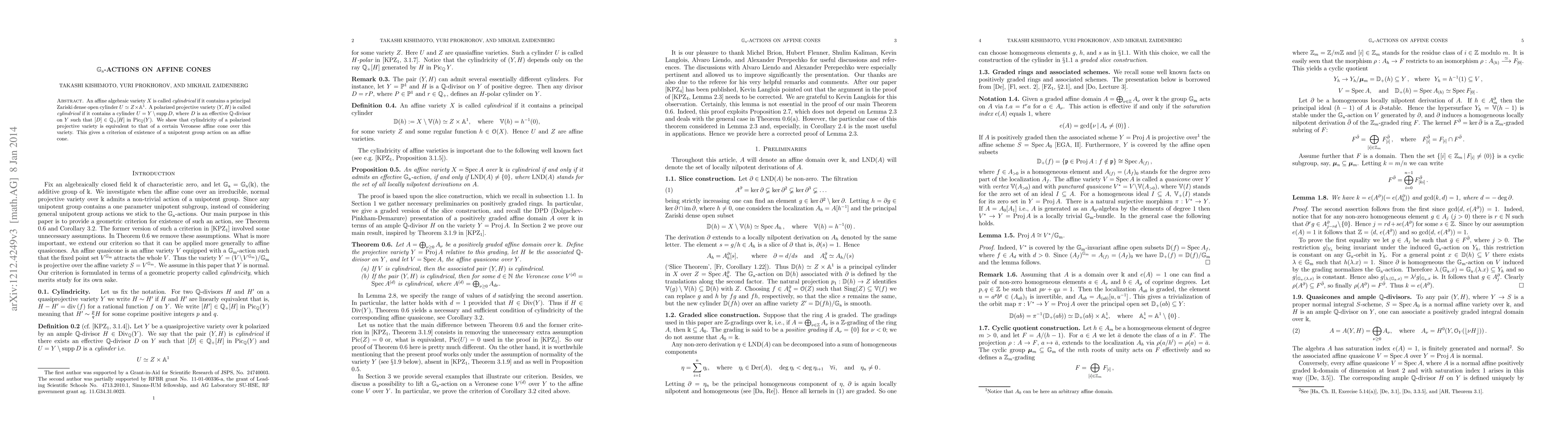 Summary: This paper provides a criterion for the existence of unipotent group actions on affine cones over projective varieties and on affine quasicones over varieties that are projective over other affine varieties. The criterion helps determine when such actions can be realized.