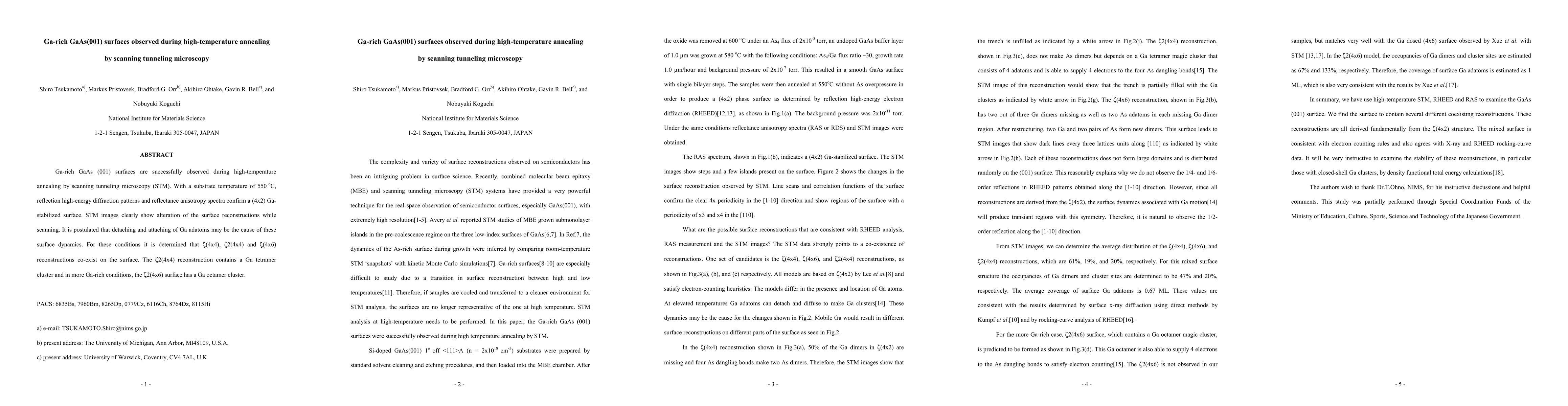 This study uses scanning tunneling microscopy to observe Ga-rich GaAs (001) surfaces during high-temperature annealing at 550°C, revealing a (4x2) Ga-stabilized surface. The research identifies coexisting zeta(4x4), zeta2(4x4), and zeta(4x6) reconstructions, with the zeta2(4x4) featuring a Ga tetramer cluster.