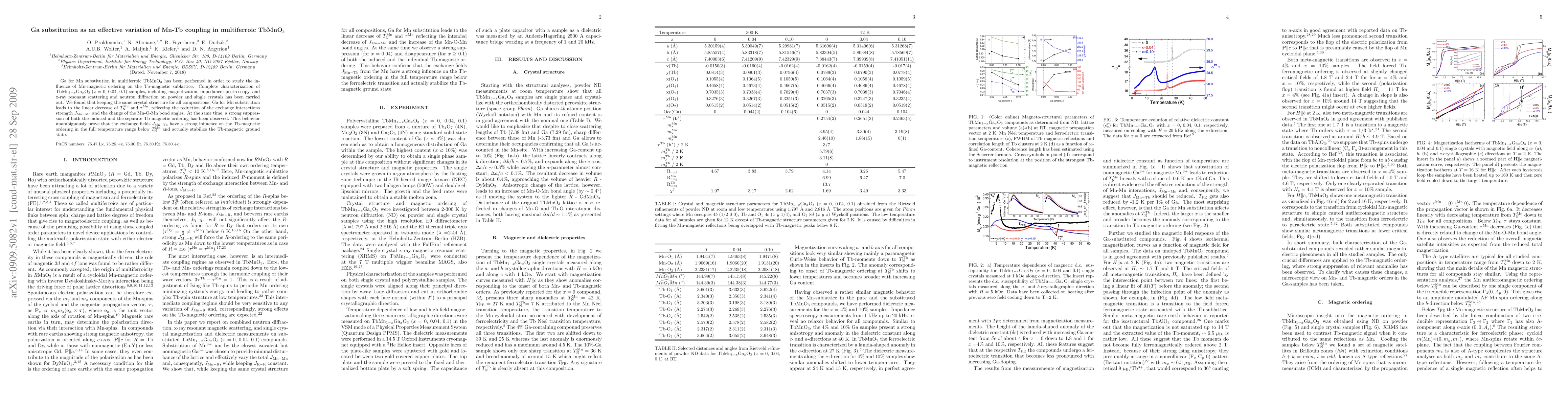 Ga for Mn substitution in multiferroic TbMnO$_{3}$ has been performed in order to study the influence of Mn-magnetic ordering on the Tb-magnetic sublattice. Complete characterization of TbMn$_{1-x}$Ga$_x$O$_{3}$ ($x$ = 0, 0.04, 0.1) samples, including magnetization, impedance spectroscopy, and x-ray resonant scattering and neutron diffraction on powder and single crystals has been carried out. We found that keeping the same crystal structure for all compositions, Ga for Mn substitution leads to the linear decrease of $T_{\rm N}^{\rm Mn}$ and $\tau^{\rm Mn}$, reflecting the reduction of the exchange interactions strength $J_{\rm Mn-Mn}$ and the change of the Mn-O-Mn bond angles. At the same time, a strong suppression of both the induced and the separate Tb-magnetic ordering has been observed. This behavior unambiguously prove that the exchange fields $J_{\rm Mn-Tb}$ have a strong influence on the Tb-magnetic ordering in the full temperature range below $T_{\rm N}^{\rm Mn}$ and actually stabilize the Tb-magnetic ground state.
