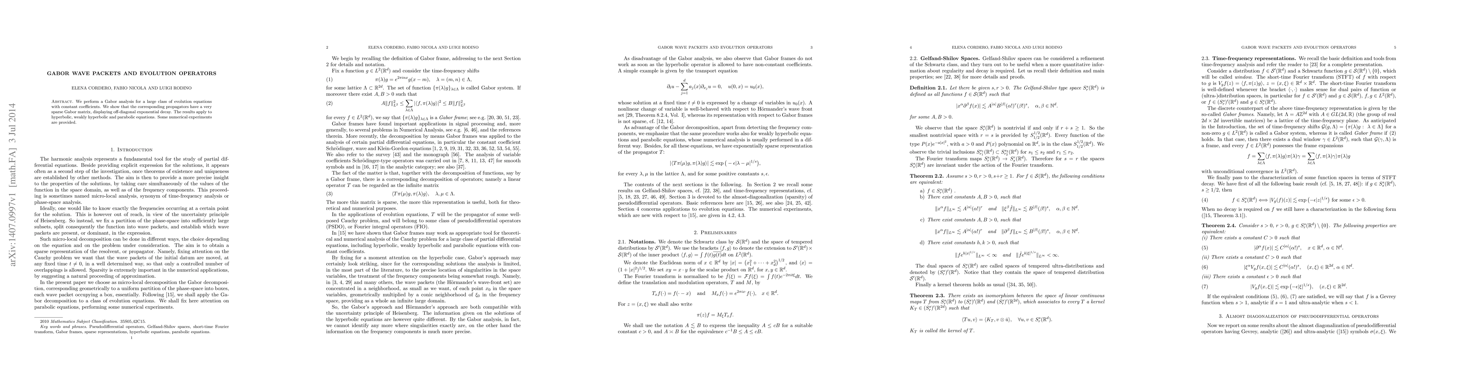 We perform a Gabor analysis for a large class of evolution equations with constant coefficients. We show that the corresponding propagators have a very sparse Gabor matrix, displaying off-diagonal exponential decay. The results apply to hyperbolic, weakly hyperbolic and parabolic equations. Some numerical experiments are provided.
