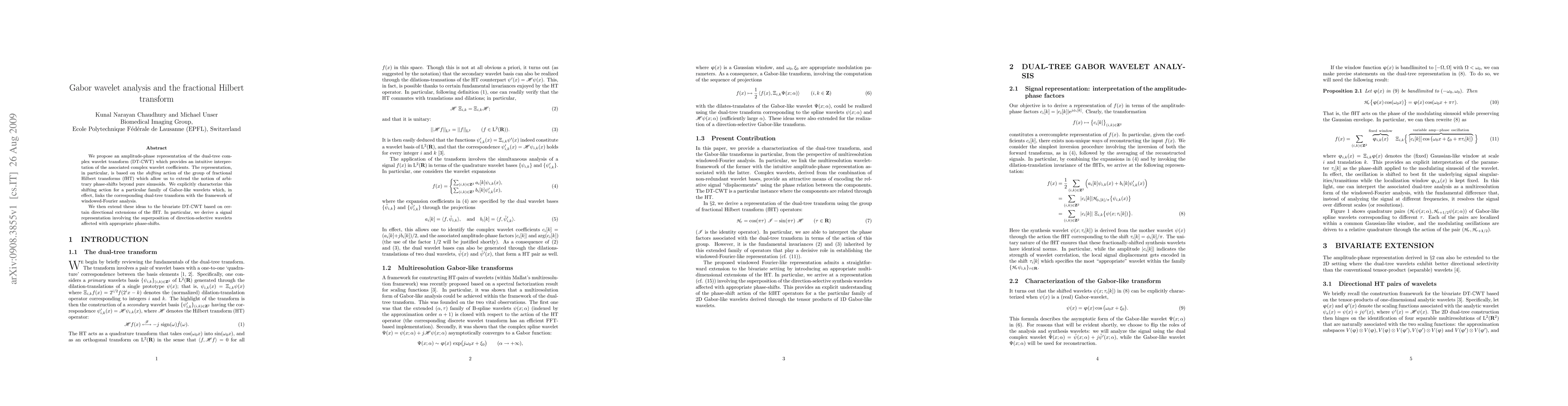 This paper introduces an amplitude-phase representation of the dual-tree complex wavelet transform using fractional Hilbert transforms, linking it to windowed-Fourier analysis. It extends these concepts to the bivariate DT-CWT, providing a signal representation with direction-selective wavelets and phase-shifts.