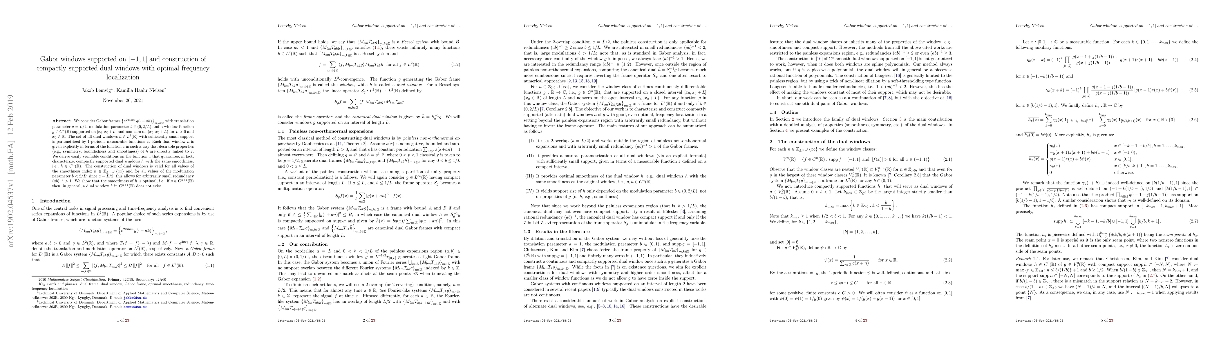 This paper constructs compactly supported dual windows for Gabor frames with optimal frequency localization, ensuring the dual windows maintain the same smoothness as the original window function. The construction is valid for all smoothness indices and modulation parameters, allowing for small redundancy.