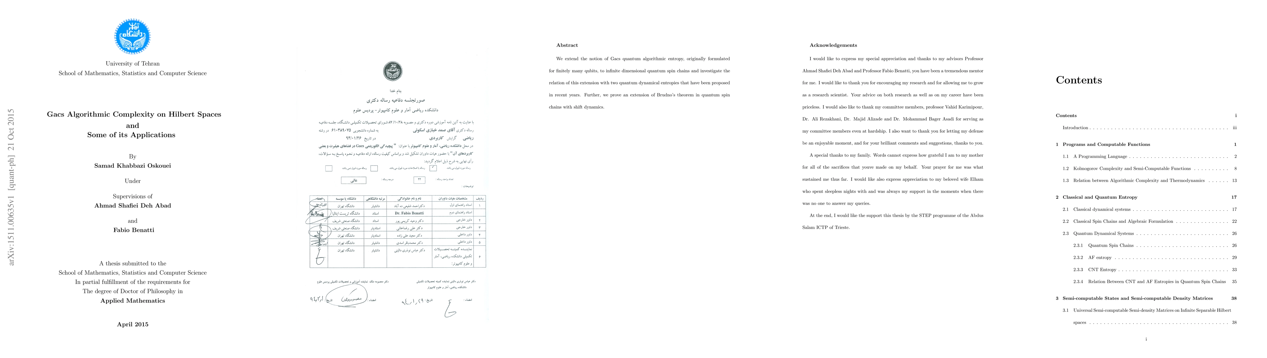 This paper extends Gacs' quantum algorithmic entropy to infinite-dimensional quantum spin chains and explores its connections with recent quantum dynamical entropies. It also proves an extension of Brudno's theorem for quantum spin chains with shift dynamics.