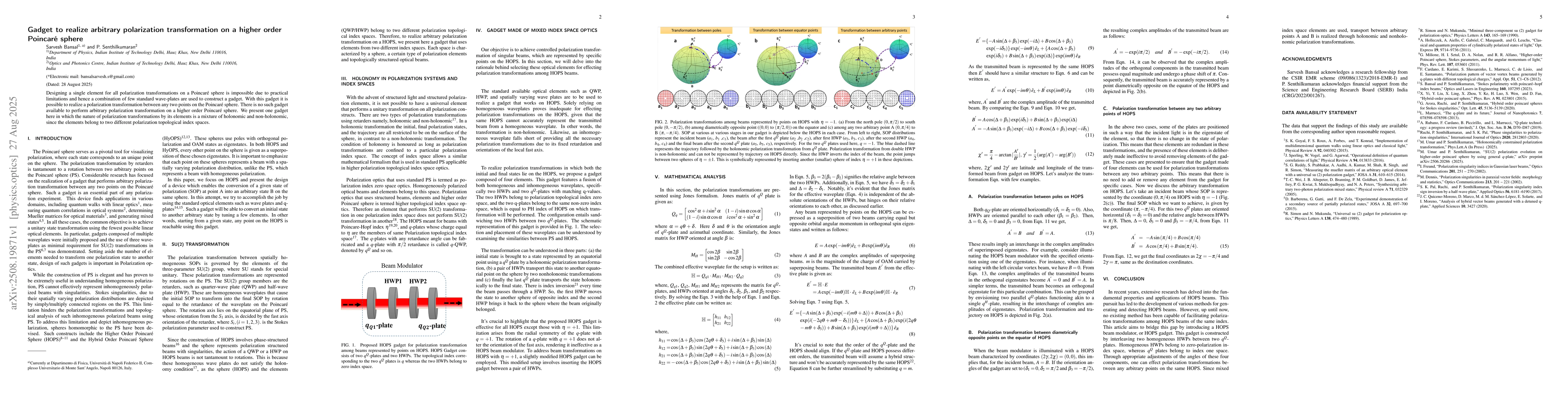 Designing a single element for all polarization transformations on a Poincar\'e sphere is impossible due to practical limitations and hence a combination of few standard wave-plates are used to construct a gadget. With this gadget it is possible to realize a polarization transformation between any two points on the Poincar\'e sphere. There is no such gadget available to perform arbitrary polarization transformation on a higher order Poincar\'e sphere. We present one gadget here in which the nature of polarization transformations by its elements is a mixture of holonomic and non-holonomic, since the elements belong to two different polarization topological index spaces.