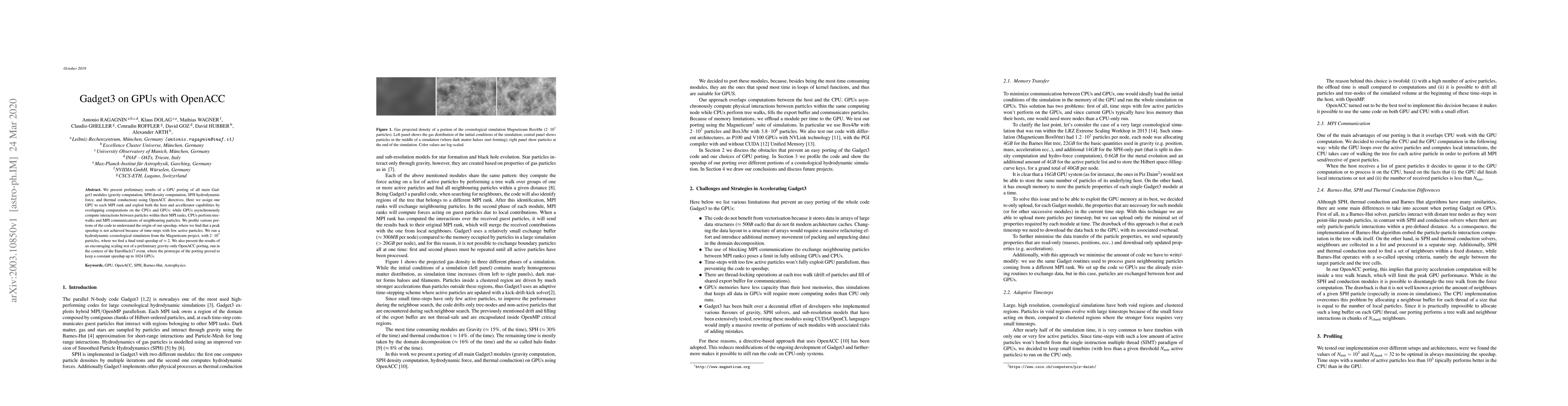 A parallel computing approach was used to port GADGET-3 to OpenACC, utilizing the host machine's CPU-GPU overlap.