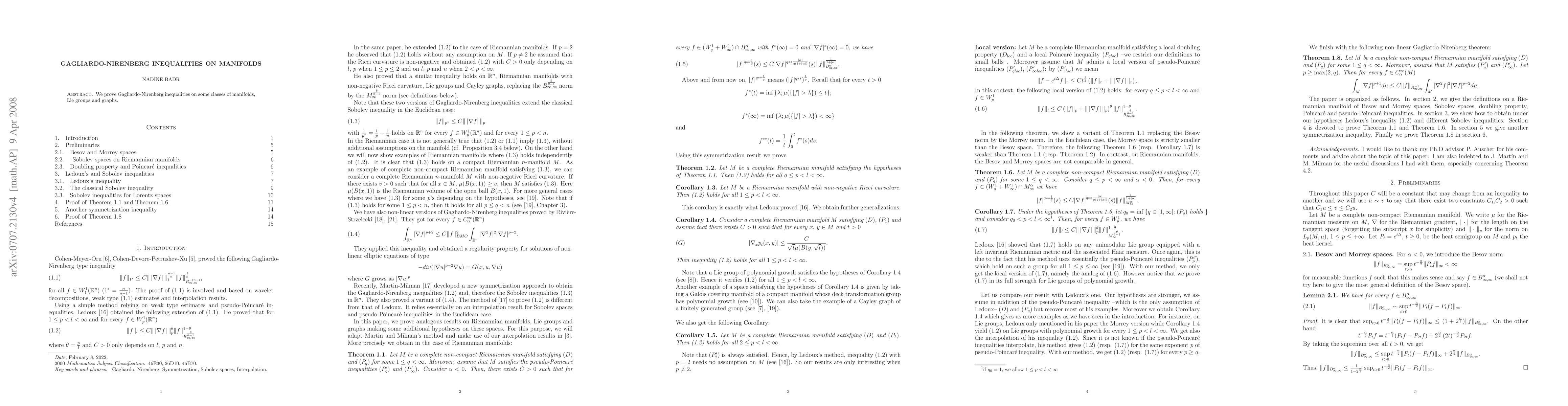 Summary: This paper establishes Gagliardo-Nirenberg inequalities on various manifolds, Lie groups, and graphs, extending these important mathematical inequalities to non-Euclidean settings. The results provide new insights into the behavior of functions on these complex structures.