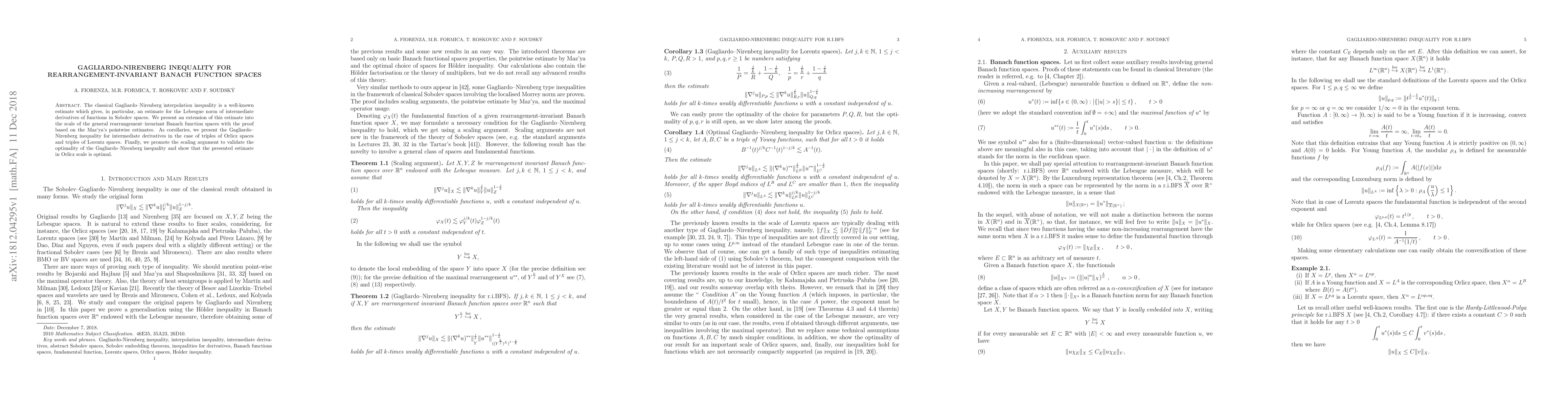 This paper extends the Gagliardo-Nirenberg inequality to rearrangement-invariant Banach function spaces, proving it using Maz'ya's pointwise estimates. It also demonstrates the inequality's optimality in the context of Orlicz and Lorentz spaces.