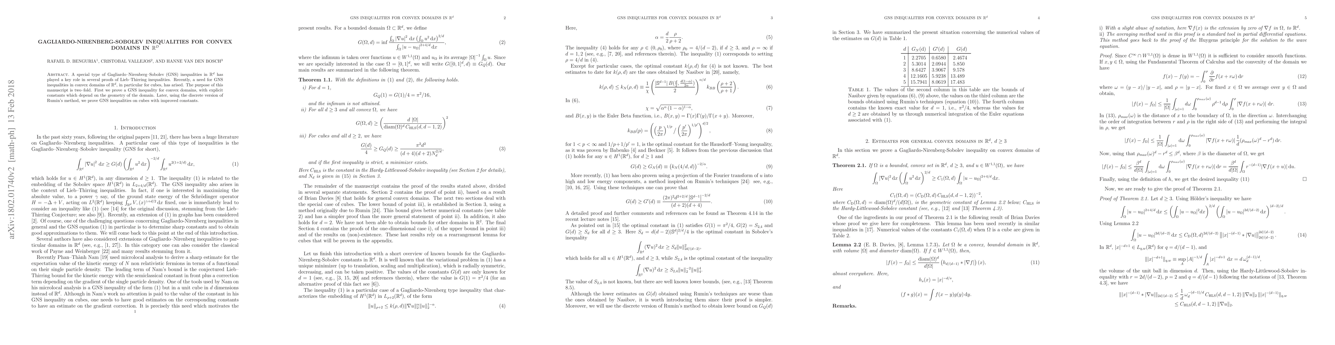 A special type of Gagliardo-Nirenberg-Sobolev (GNS) inequalities in $\mathbb{R}^d$ has played a key role in several proofs of Lieb-Thirring inequalities. Recently, a need for GNS inequalities in convex domains of $\mathbb{R}^d$, in particular for cubes, has arised. The purpose of this manuscript is two-fold. First we prove a GNS inequality for convex domains, with explicit constants which depend on the geometry of the domain. Later, using the discrete version of Rumin's method, we prove GNS inequalities on cubes with improved constants.