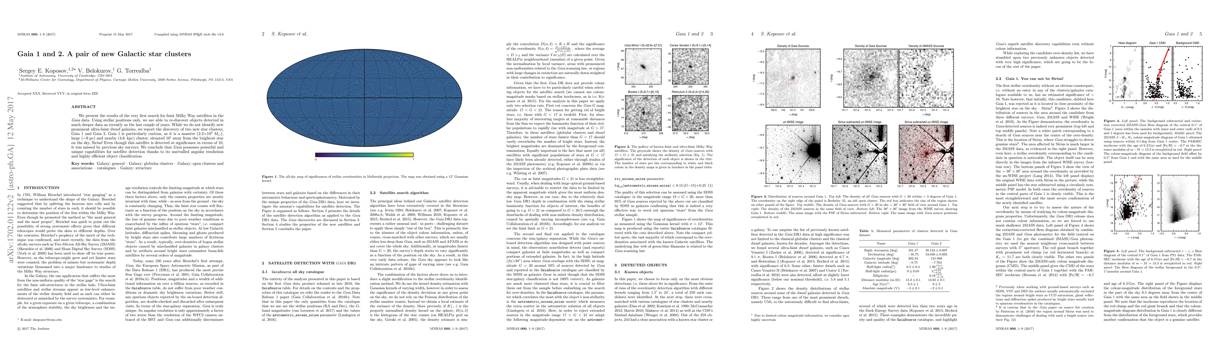 The paper reports the discovery of two new star clusters, Gaia 1 and Gaia 2, using Gaia data. Gaia 1 is a massive, large, and nearby cluster, yet it was missed by previous sky surveys, highlighting Gaia's superior detection capabilities.