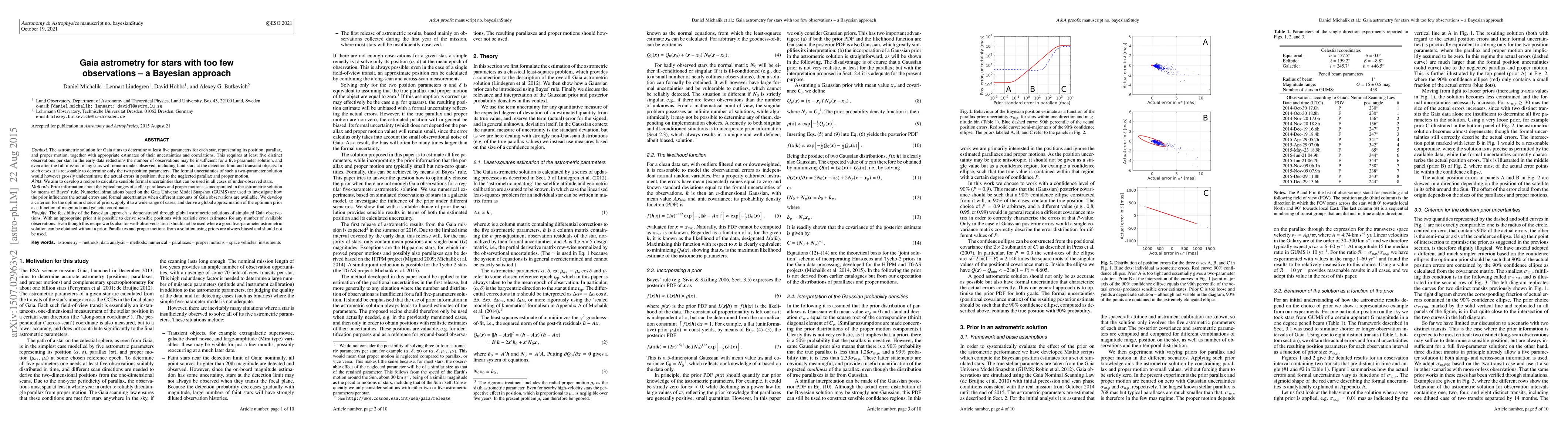 Gaia's astrometric solution aims to determine at least five parameters for each star, together with appropriate estimates of their uncertainties and correlations. This requires at least five distinct observations per star. In the early data reductions the number of observations may be insufficient for a five-parameter solution, and even after the full mission many stars will remain under-observed, including faint stars at the detection limit and transient objects. In such cases it is reasonable to determine only the two position parameters. Their formal uncertainties would however grossly underestimate the actual errors, due to the neglected parallax and proper motion. We aim to develop a recipe to calculate sensible formal uncertainties that can be used in all cases of under-observed stars. Prior information about the typical ranges of stellar parallaxes and proper motions is incorporated in the astrometric solution by means of Bayes' rule. Numerical simulations based on the Gaia Universe Model Snapshot (GUMS) are used to investigate how the prior influences the actual errors and formal uncertainties when different amounts of Gaia observations are available. We develop a criterion for the optimum choice of priors, apply it to a wide range of cases, and derive a global approximation of the optimum prior as a function of magnitude and galactic coordinates. The feasibility of the Bayesian approach is demonstrated through global astrometric solutions of simulated Gaia observations. With an appropriate prior it is possible to derive sensible positions with realistic error estimates for any number of available observations. Even though this recipe works also for well-observed stars it should not be used where a good five-parameter astrometric solution can be obtained without a prior. Parallaxes and proper motions from a solution using priors are always biased and should not be used.