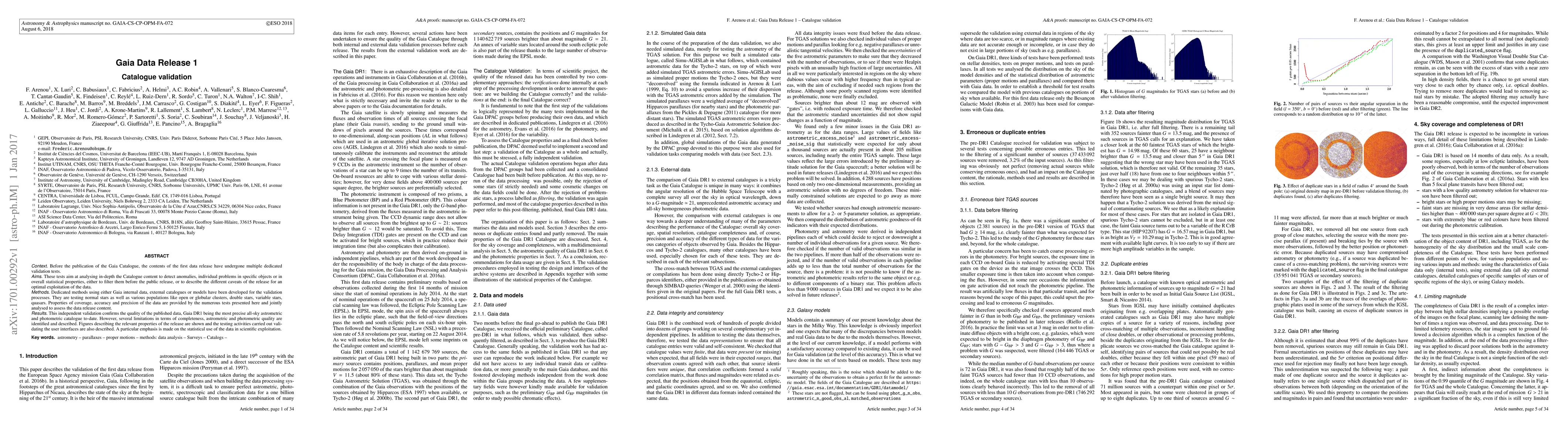Gaia Data Release 1 (DR1) Catalogue validation confirms its high precision, making it the most accurate all-sky astrometric and photometric catalogue to date. Despite this, limitations in completeness and quality are identified, and specific caveats are described to optimize data usage.