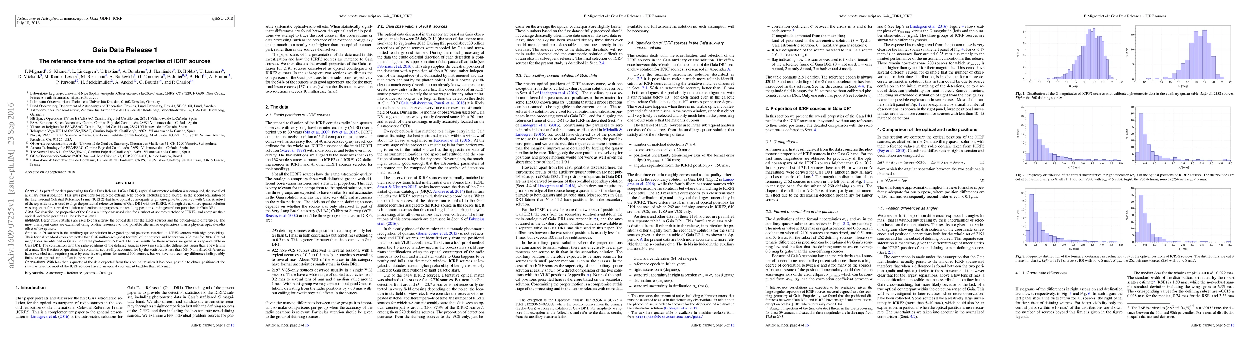 Gaia Data Release 1 (DR1) provides a refined auxiliary quasar solution aligning its reference frame with the ICRF2, achieving sub-mas level accuracy for extragalactic objects. The study reveals optical and radio position comparisons with no significant systematic differences, though some sources require further investigation.
