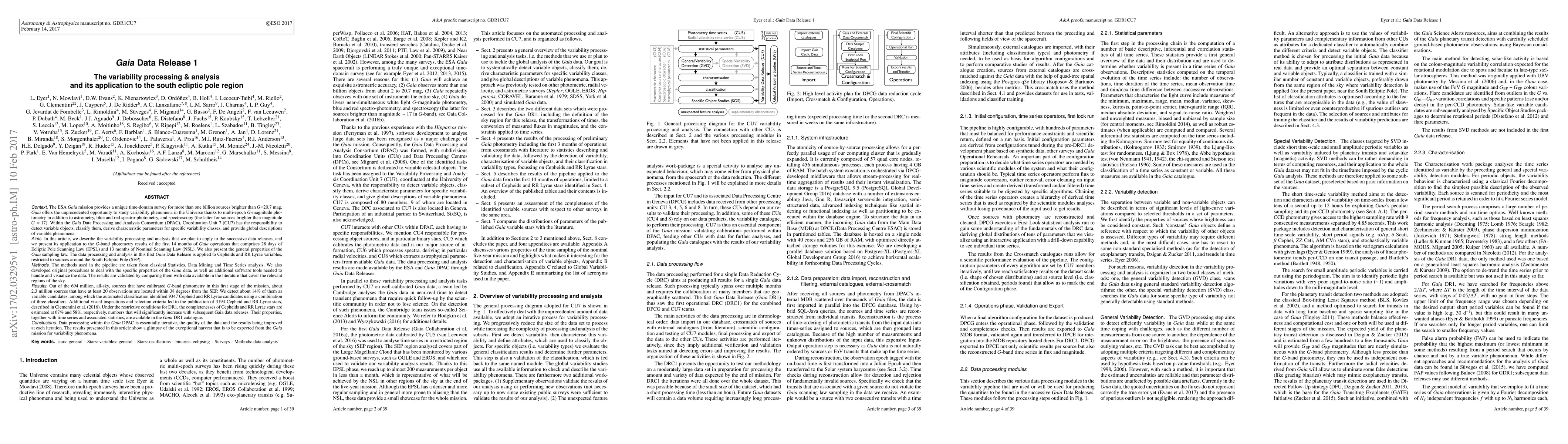 The Gaia Data Release 1 (DR1) mission analyzes variability phenomena using multi-epoch G-band photometry, identifying 14% of 2.3 million sources near the South Ecliptic Pole as variable candidates, including 3194 Cepheid and RR Lyrae stars. The mission's iterative data processing promises significant improvements in completeness for these variable stars in future releases.