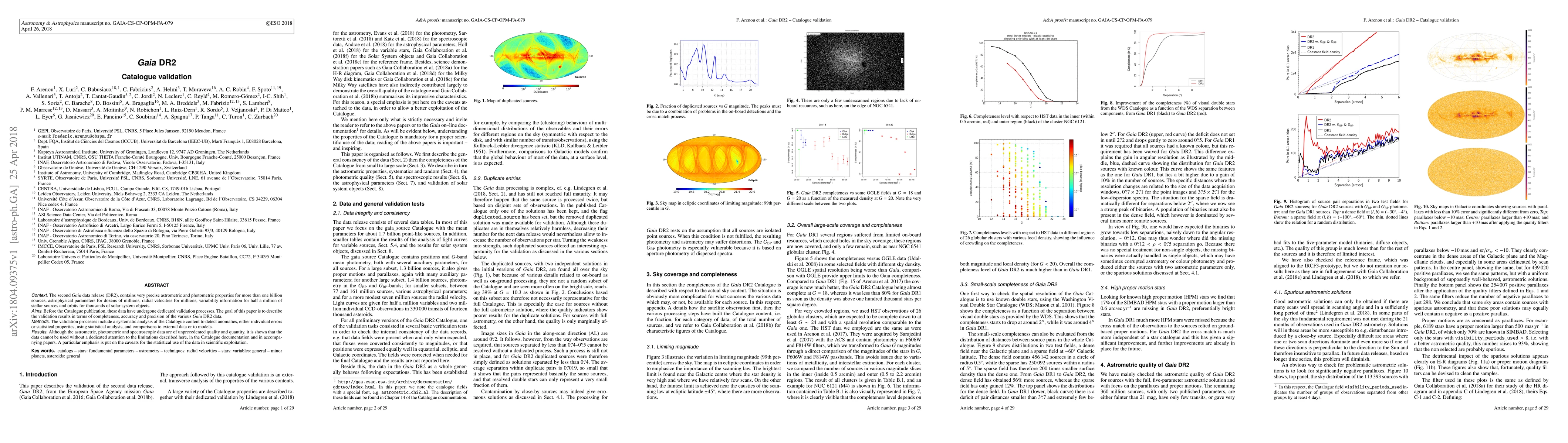 The Gaia Data Release 2 (DR2) catalogue validation demonstrates the high precision and completeness of its data, but highlights the need for careful consideration of its limitations and documentation for accurate scientific use. The validation processes identified anomalies and compared data to external sources to ensure reliability.