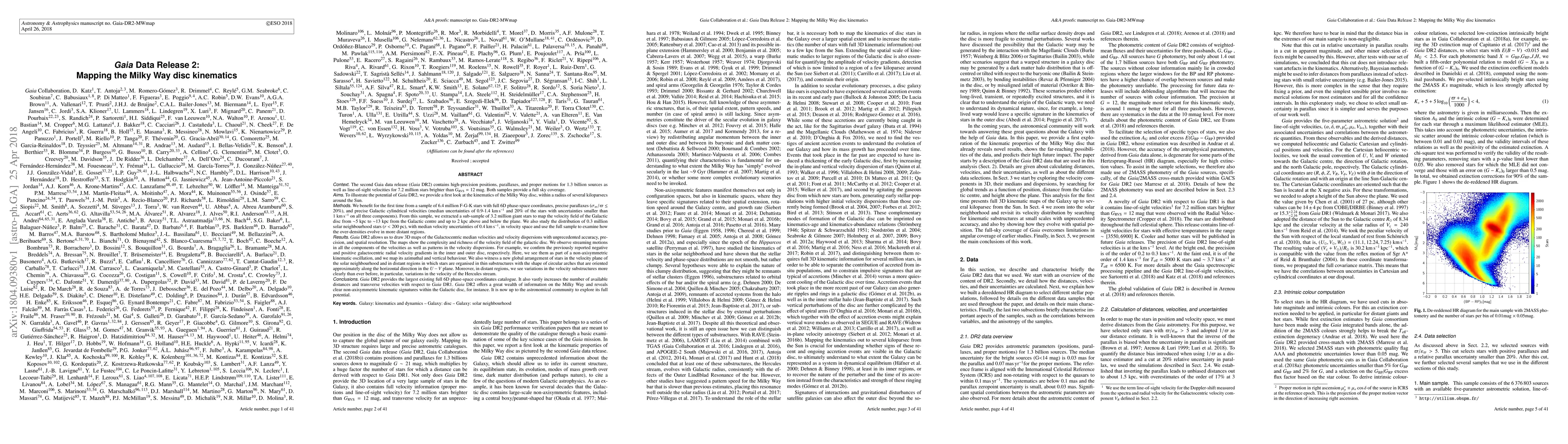 To illustrate the potential of GDR2, we provide a first look at the kinematics of the Milky Way disc, within a radius of several kiloparsecs around the Sun. We benefit for the first time from a sample of 6.4 million F-G-K stars with full 6D phase-space coordinates, precise parallaxes, and precise Galactic cylindrical velocities . From this sample, we extracted a sub-sample of 3.2 million giant stars to map the velocity field of the Galactic disc from $\sim$5~kpc to $\sim$13~kpc from the Galactic centre and up to 2~kpc above and below the plane. We also study the distribution of 0.3 million solar neighbourhood stars ($r < 200$~pc), with median velocity uncertainties of 0.4~km/s, in velocity space and use the full sample to examine how the over-densities evolve in more distant regions. GDR2 allows us to draw 3D maps of the Galactocentric median velocities and velocity dispersions with unprecedented accuracy, precision, and spatial resolution. The maps show the complexity and richness of the velocity field of the galactic disc. We observe streaming motions in all the components of the velocities as well as patterns in the velocity dispersions. For example, we confirm the previously reported negative and positive galactocentric radial velocity gradients in the inner and outer disc, respectively. Here, we see them as part of a non-axisymmetric kinematic oscillation, and we map its azimuthal and vertical behaviour. We also witness a new global arrangement of stars in the velocity plane of the solar neighbourhood and in distant regions in which stars are organised in thin substructures with the shape of circular arches that are oriented approximately along the horizontal direction in the $U-V$ plane. Moreover, in distant regions, we see variations in the velocity substructures more clearly than ever before, in particular, variations in the velocity of the Hercules stream. (abridged)