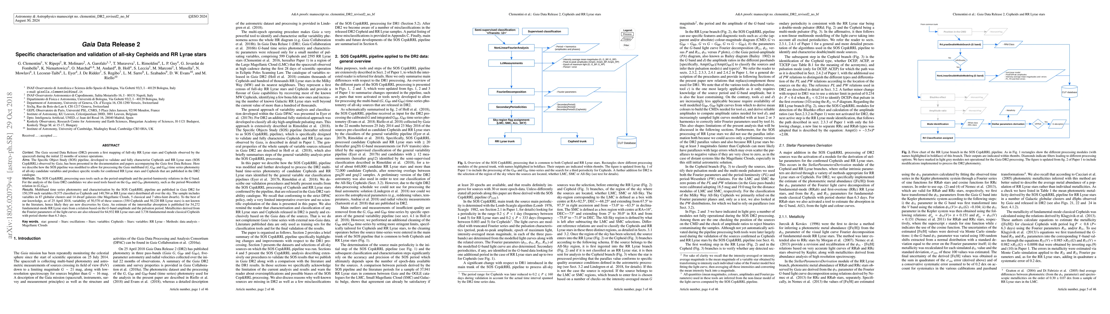 Gaia Data Release 2 (DR2) characterizes and validates all-sky Cepheids and RR Lyrae stars using the modified Specific Object Study (SOS) pipeline, revealing 150,359 variable stars, including 9,575 Cepheids and 140,784 RR Lyrae stars, with 50,570 likely new discoveries. The analysis employs multiband photometry and period-luminosity relations.
