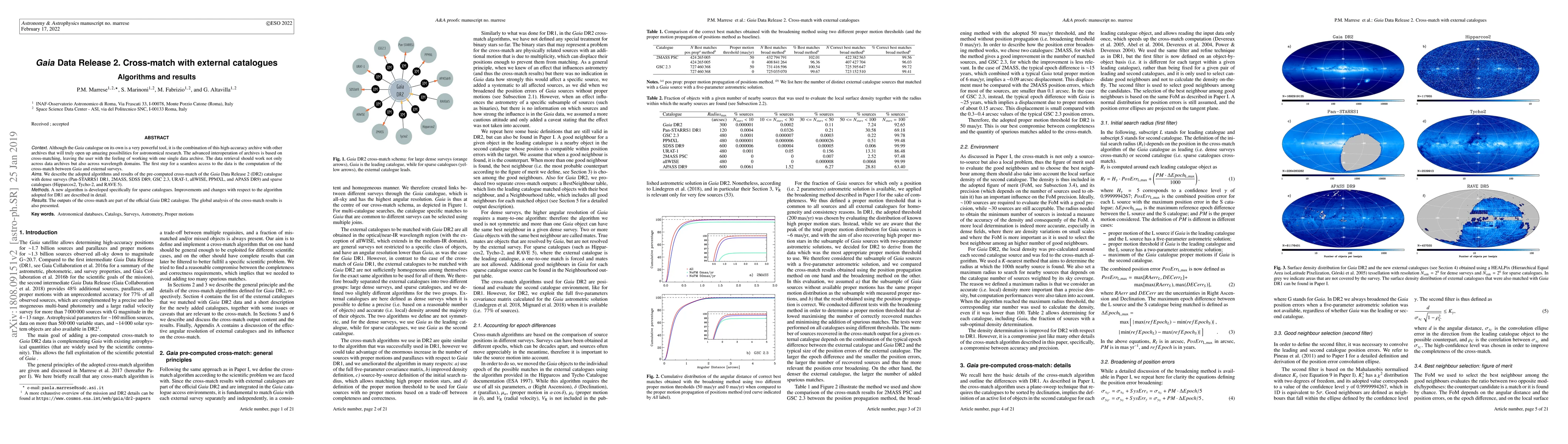 The Gaia Data Release 2 (DR2) cross-match with external catalogues employs new algorithms for both dense and sparse surveys, enhancing data retrieval across different wavelengths. The results of this cross-matching are integrated into the official Gaia DR2 catalogue, facilitating seamless data access and interoperability.